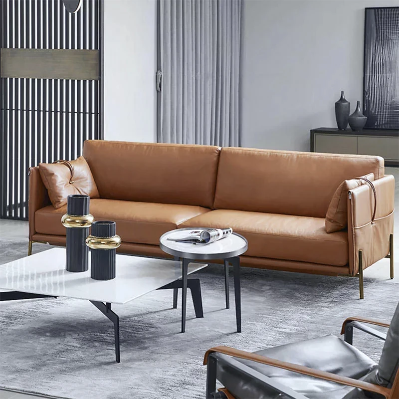 イタリアンラグジュアリー現代ミニマリストの上質ナッパレザー使用!小型リビングにぴったりのシングル・ダブル・トリプルレザーソファ、ふんわりダウンクッション付きで極上の座り心地を実現。あなたの空間をスタイリッシュに変身させます!