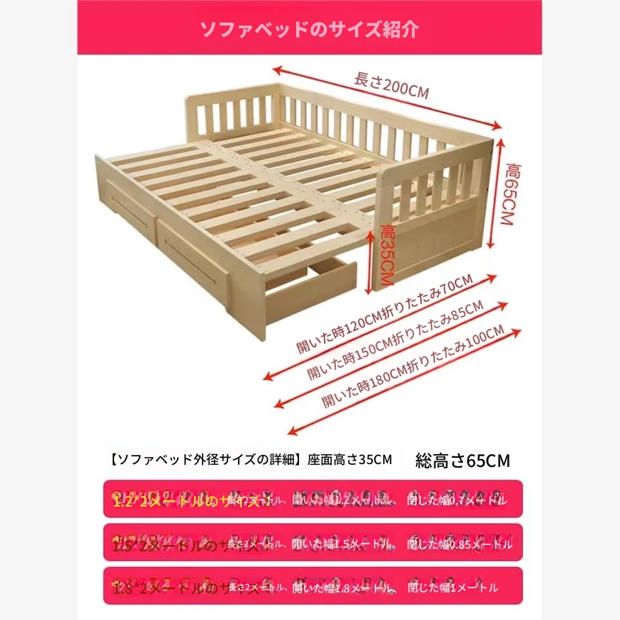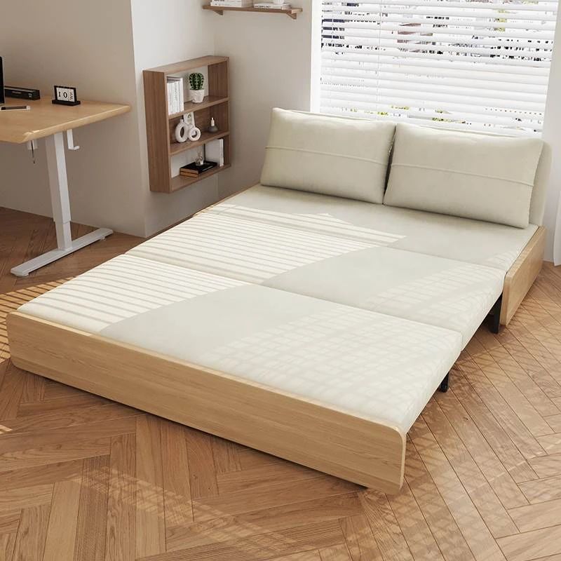 【香港送料無料】折りたたみ式実木ソファベッド!小型住宅にぴったりの多機能デザイン。二人用、座る・寝る両方に対応!快適な空間を手に入れよう!