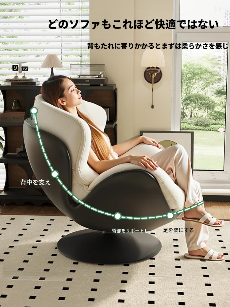 スワン型リラックスソファ - 寝転んでくつろげる!回転式シングルソファ、リビング・寝室・バルコニーに最適なくつろぎ空間を演出します。あなたの快適なひとときをお届けします!