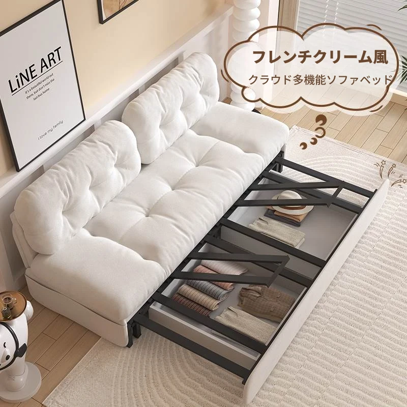 2025年新作!ふわふわクリーム風リビング収納ソファベッド - 折りたたみ式の2WAYデザイン、小さなお部屋にも最適な雲のようなソファベッド。快適さと機能性を兼ね備えたおしゃれなアイテム!