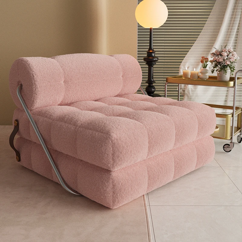 タジ・ラズベリーソファ - 寝転んでもくつろげる北欧スタイルのクリーム色タタミソファ!寝室やリビングにぴったりなシングル&ダブル用、快適なリクライニングチェアで、あなたのリラックスタイムを特別なものに。