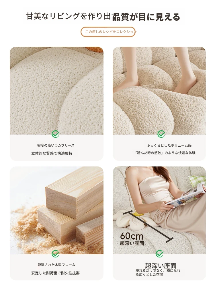 タジラウンジソファ - 寝転んでリラックス!北欧クリーム風デザインの畳スタイル、寝室やリビングにぴったりの一人掛け&二人掛けソファ。快適なひとときをお届けします!