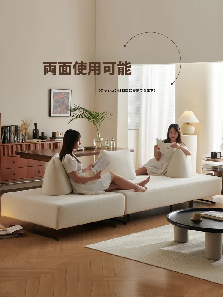 おしゃれな牛角ソファー|コンパクトなハンドルレスデザイン|両面使用可能なリビング用|移動式背もたれ|洗えるコットンリネン素材|小さなスペースにもぴったり!