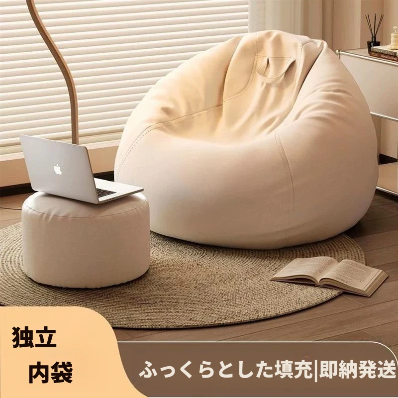 リラックスできる一人用ソファ!寝転がってもOK、豆袋デザインの人間用ドッグベッド。バルコニーや寝室にぴったり。クリーミーな色合いでおしゃれ。送料無料でお届け!
