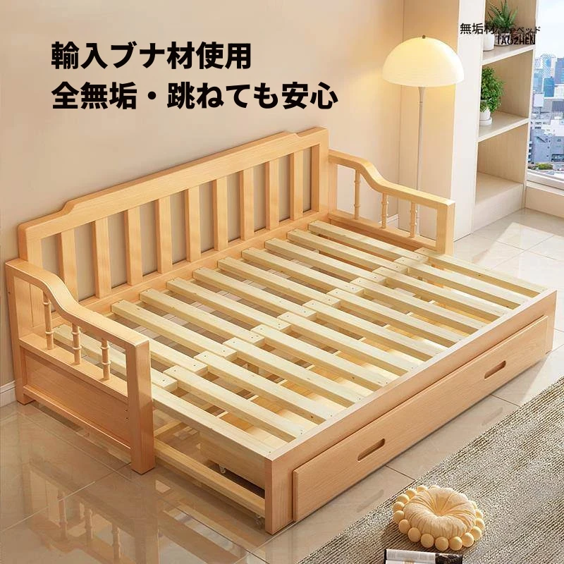 香港送料無料!新中式デザインの実木ソファベッド。リビングに最適な多機能、折りたたみ式のスライドベッド。二人掛け・寝台兼用で、快適なひとときを提供します。新しいライフスタイルをお楽しみください!