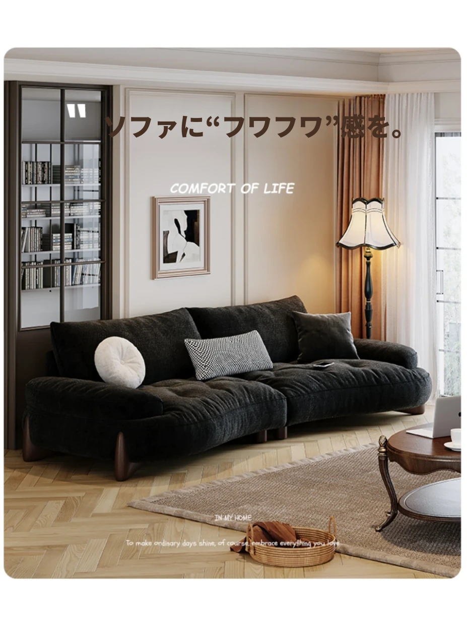 ヴィンテージシャニールスノーフレークシリーズ デザイナーソファ モジュラーコンビネーションソファ ブラック アンティークスタイル 全面洗濯可能なソファで、スタイリッシュで快適な空間を演出!