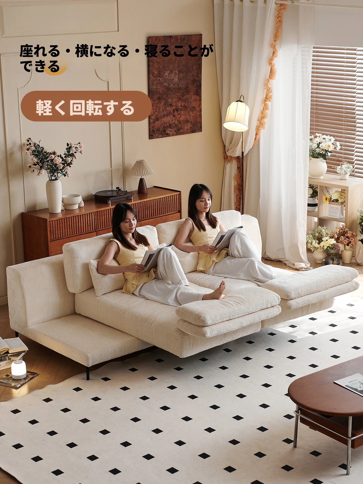 2025年新作!フレンチクリーム風リビング用創造的なスワイプ型回転可能マルチファンクションファブリックソファ - スタイリッシュで快適、あなたのリビングを華やかに彩ります!