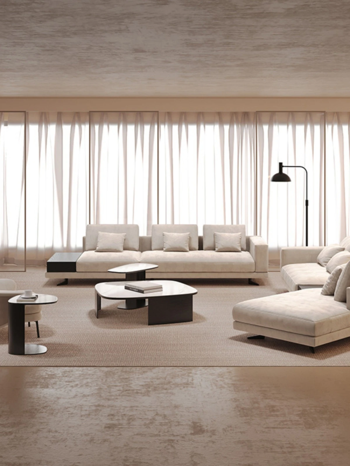 ナビウィ異形カウチソファー|クリームカラーのリビング向け|お手入れ不要のテクノロジー生地|モダンでシンプルな竹節デザイン|インスタ映え間違いなし!