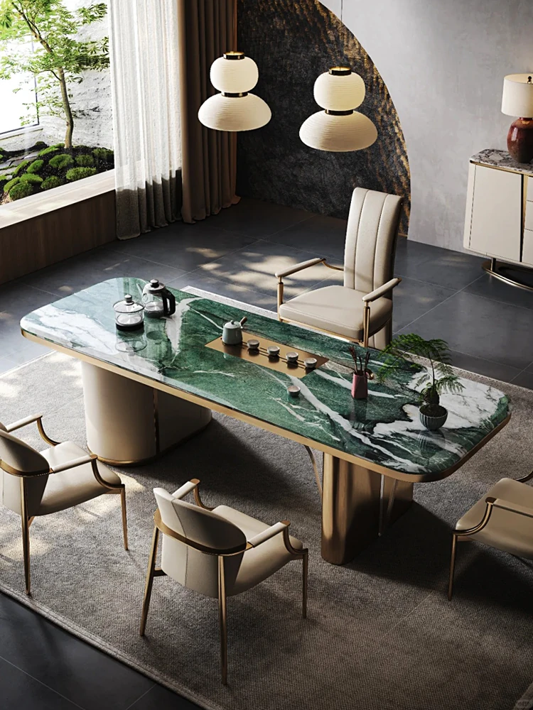 ブラジル直輸入の冷たい翡翠を使用した高級石製テーブル。長方形デザインのイタリアンミニマリズムで、広々としたヴィラや大きな部屋にぴったりの天然大理石ダイニングテーブルです。
