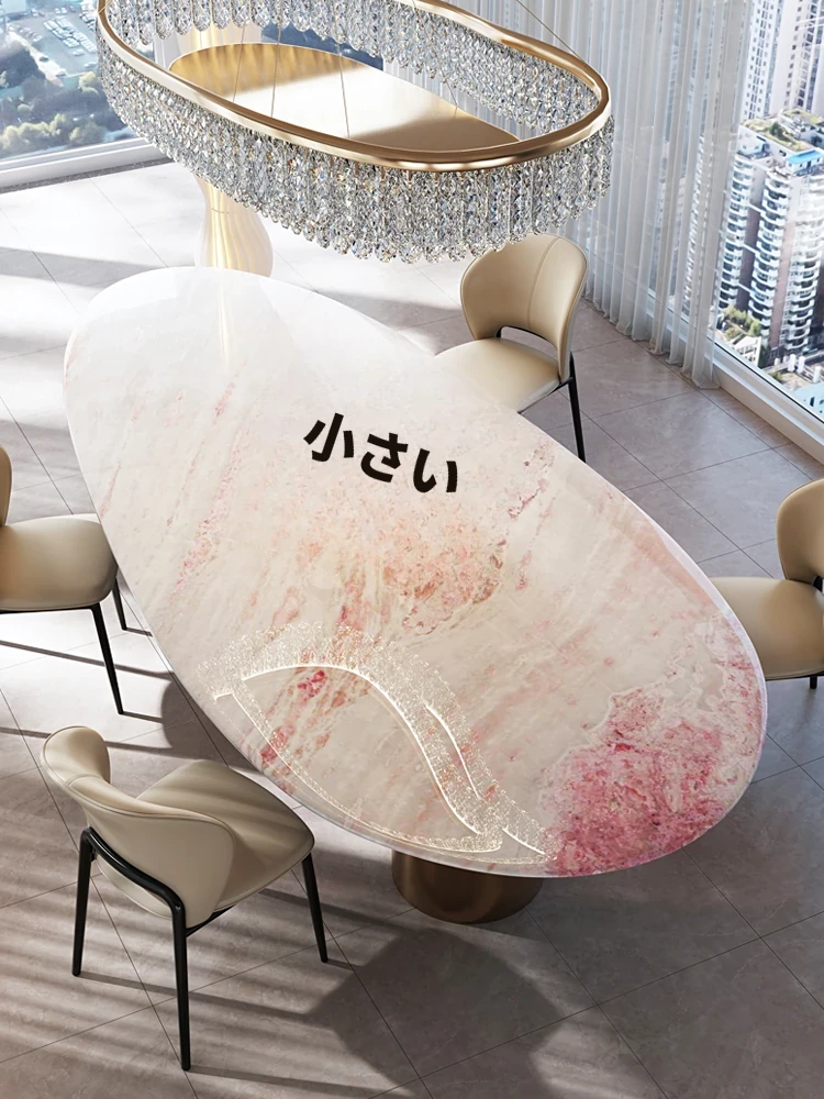 輸入天然高級ローズレインボー大理石ダイニングテーブル - エレガントな水滴型、別荘にぴったりのオーバルデザインで、特別な食事体験を演出します。