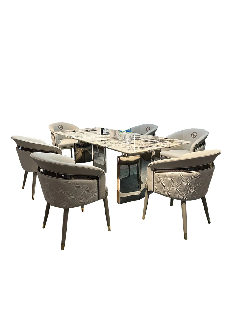 イタリアンラグジュアリー天然大理石ダイニングテーブル&チェアセット - シンプルでモダンな高級家具、円形テーブルと長方形テーブルの両方を取り揃えています。おしゃれな食卓で特別なひとときを演出!