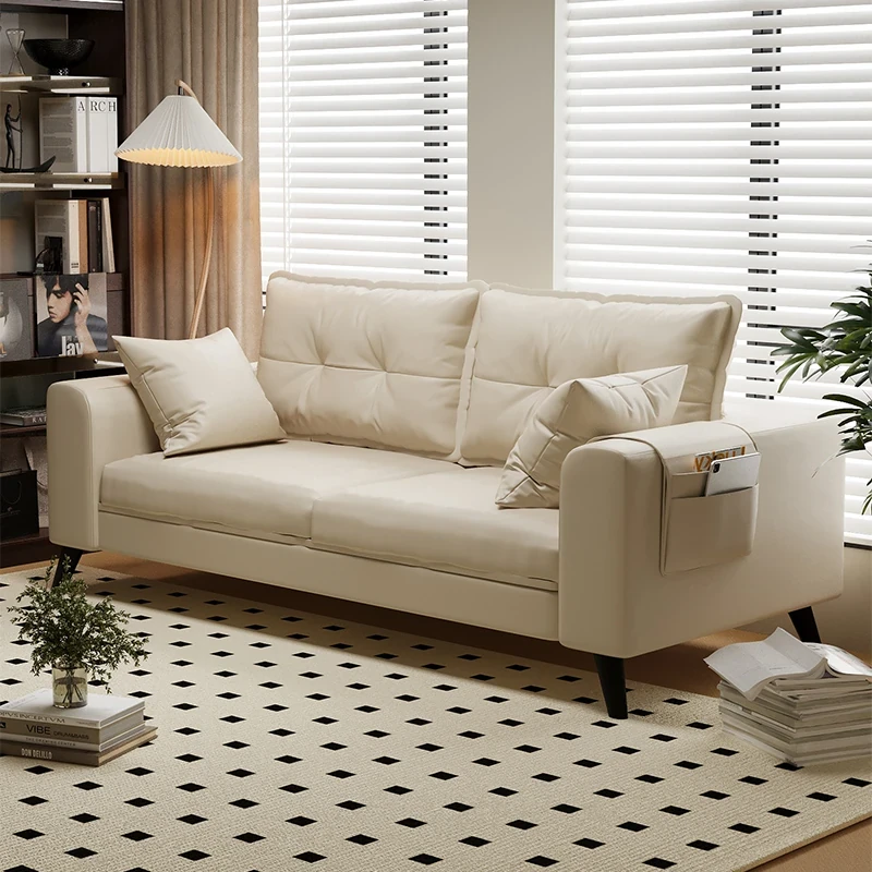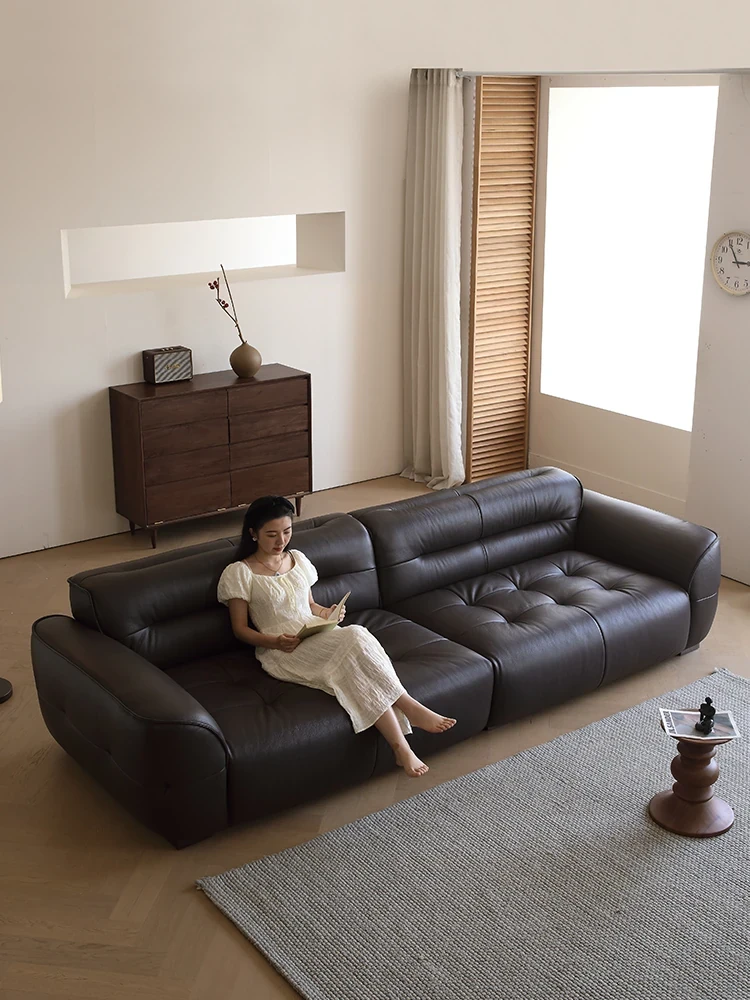 Italian Luxury Modern Minimalist Top Layer Napa Leather Sofa for Small Living Rooms - Stylish Single, Double, and Triple Seater with Down Filling