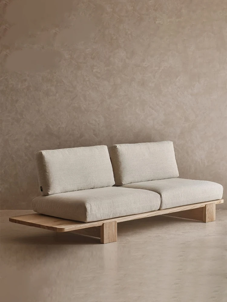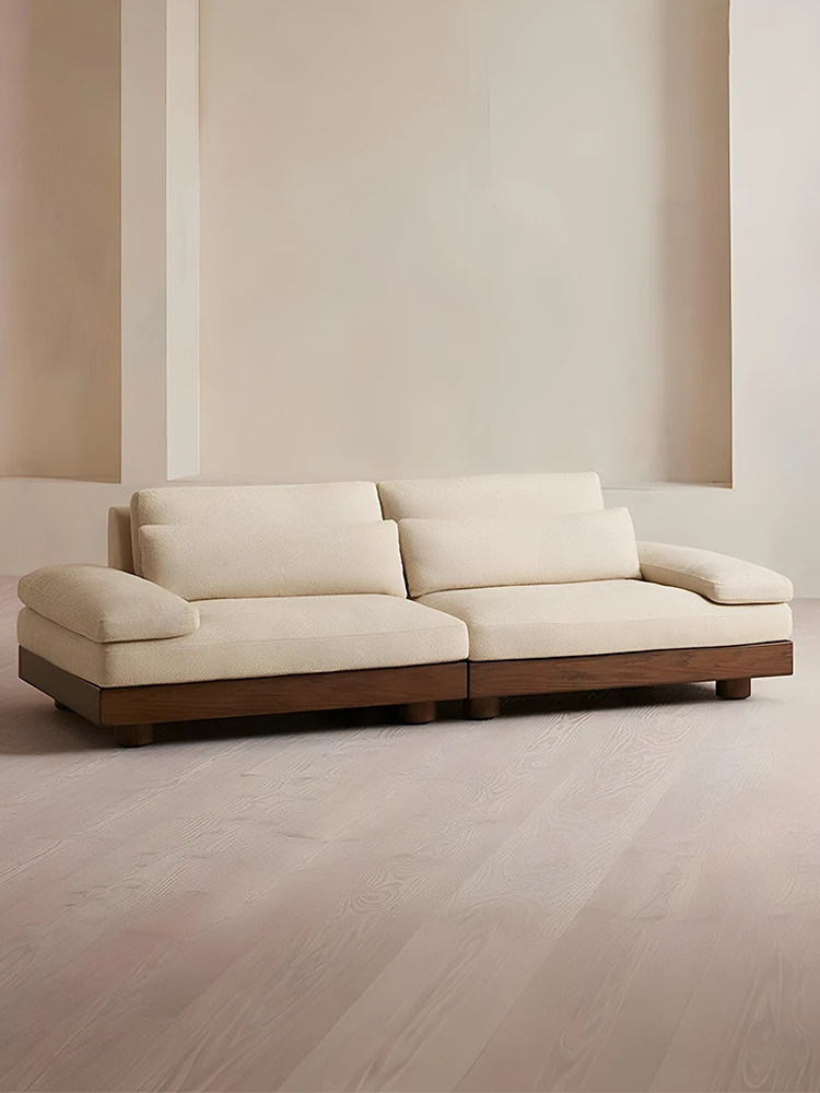Japanese Wabi-Sabi Style Solid Wood Sofa with Fabric Upholstery for Small Living Rooms – Perfect for Tatami, Guesthouses, and Relaxation Areas
