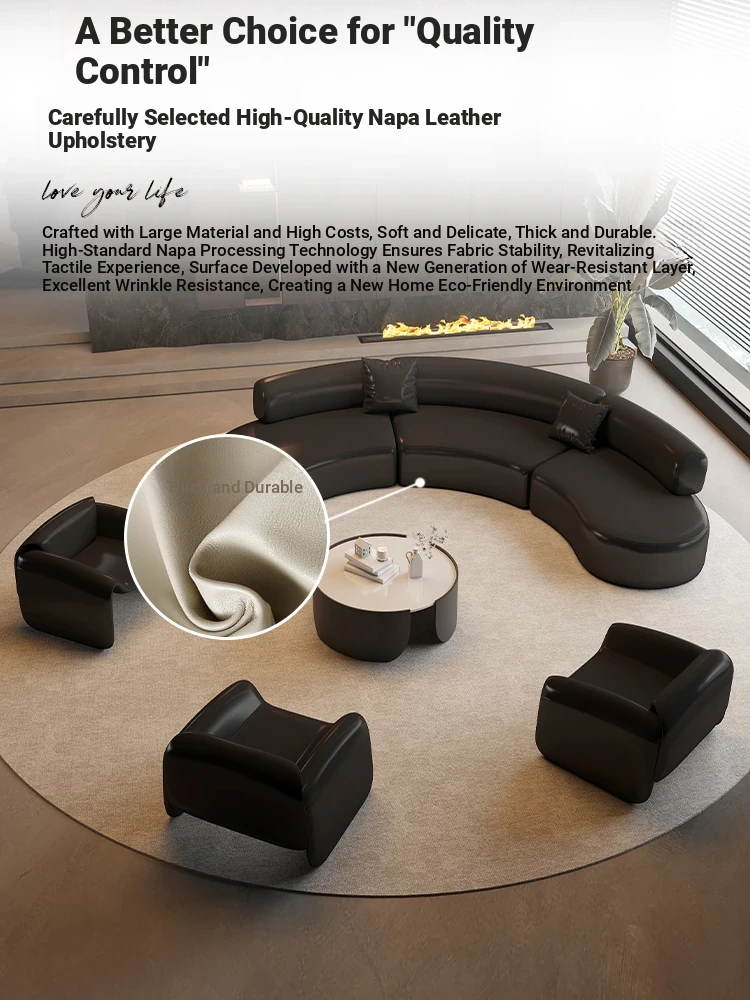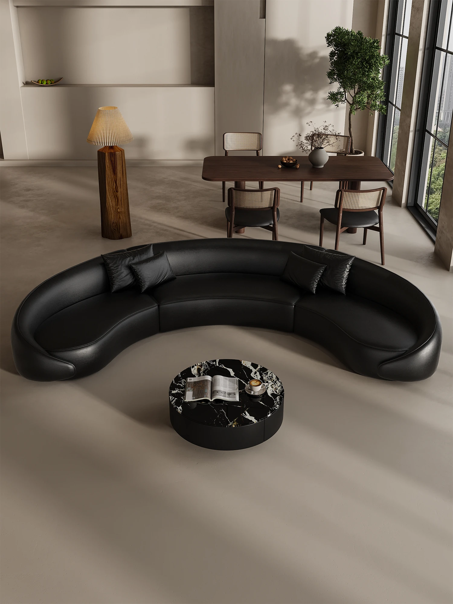 Italian Minimalist Curved Genuine Leather Sofa – Luxury Villa Living Room Drift Design Ferrari-Inspired Couch for Modern Elegance