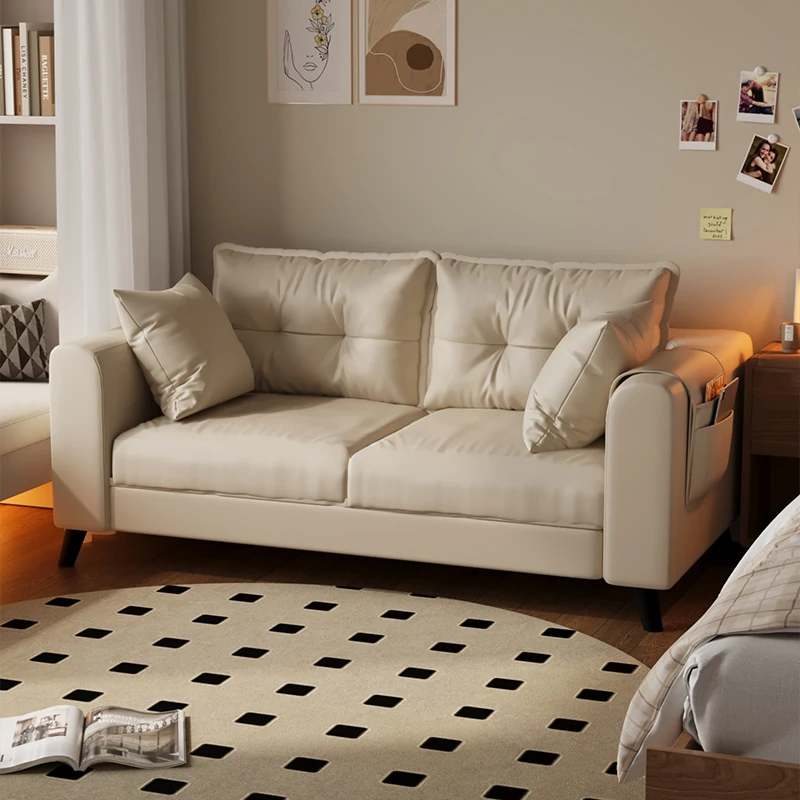 Modern Minimalist Black Leather Sofa for Small Living Rooms - Vintage Style Two-Seater and Three-Seater Couch for Relaxation in Bedrooms and Cozy Spaces