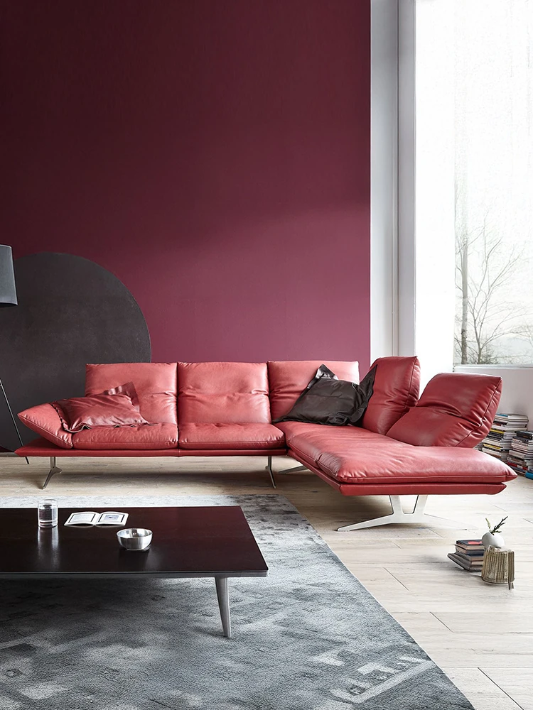 Italian Minimalist Luxurious Genuine Leather Sofa - High-End Corner Sectional with Chaise Lounge for Stylish Living Room Design