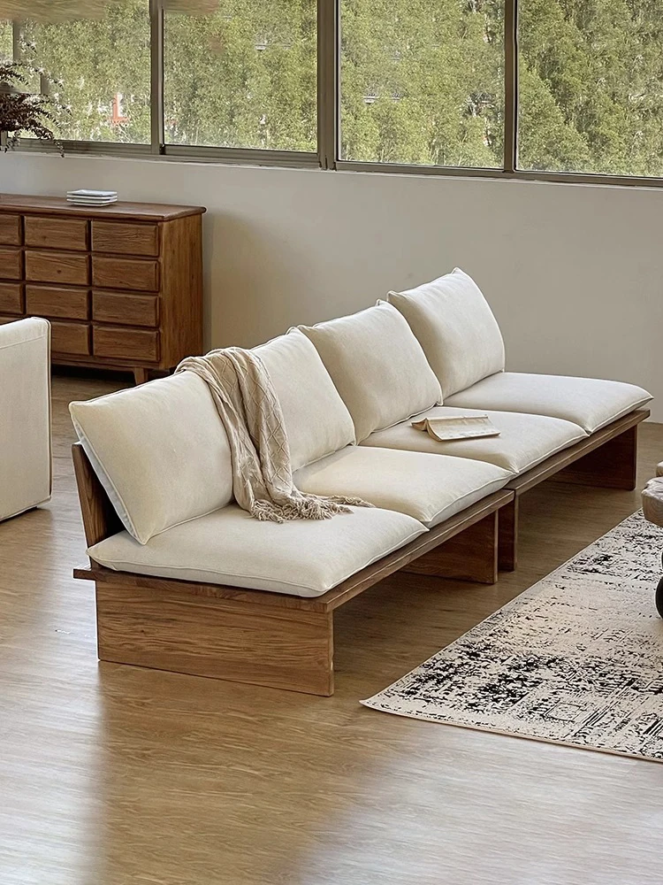 Vintage Creamy Japanese Style Solid Wood Sofa - Modern Minimalist Lounge Seating for Villas and Living Rooms, Perfect for Relaxation and Reception