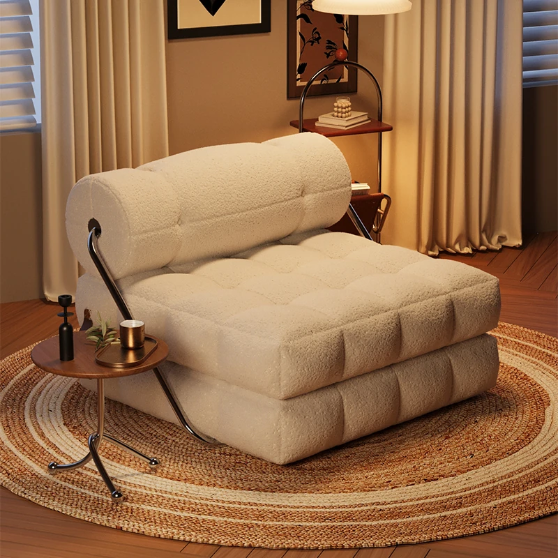 Nordic Cream Lazy Sofa - Versatile Reclining and Sleeping Design for Bedroom and Living Room, Perfect for Couples or Singles, Comfortable Tatami-style Armchair