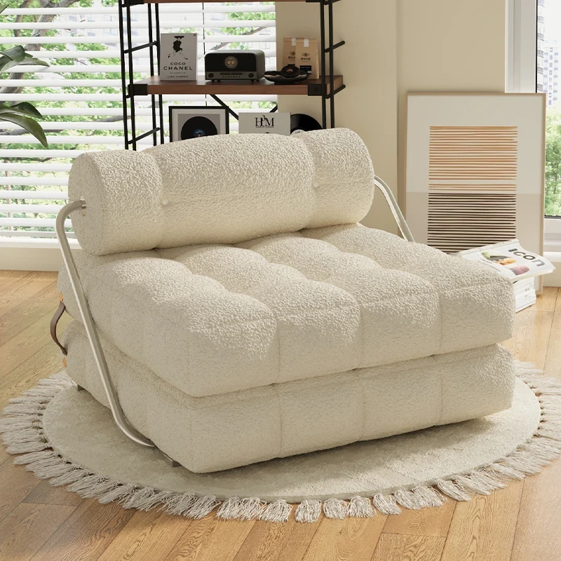 Nordic Cream Lazy Sofa - Versatile Reclining and Sleeping Sofa for Bedroom and Living Room, Perfect for Couples or Singles, Space-Saving Tatami Design