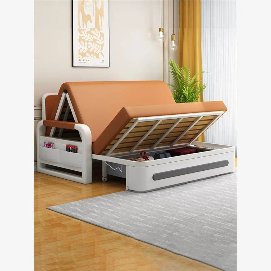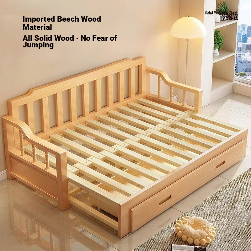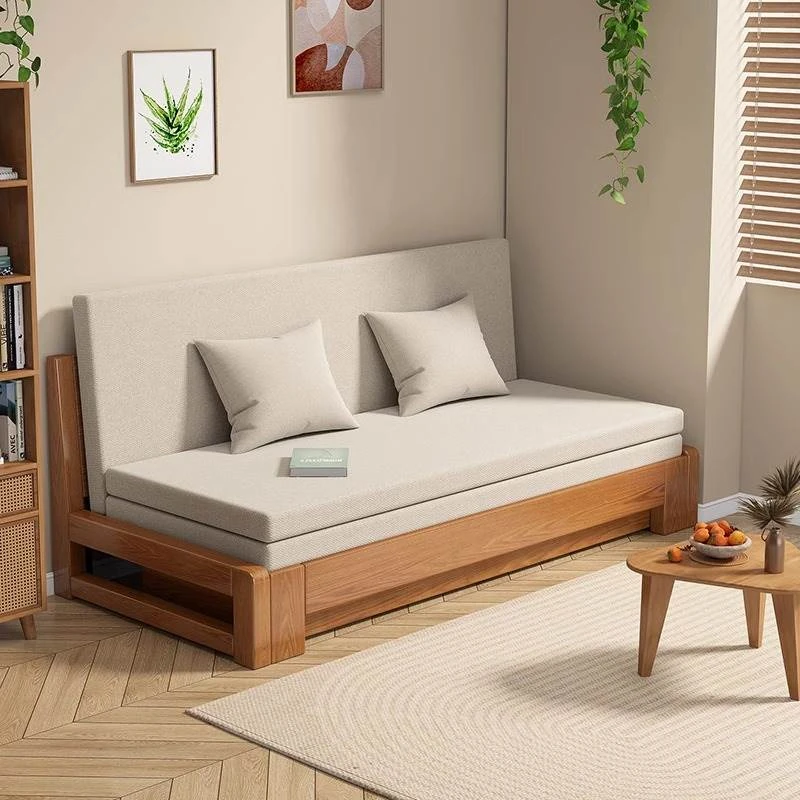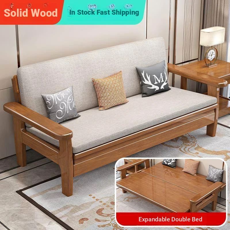 2024 New Arrival: Hong Kong Free Shipping Solid Wood Sofa Bed - Foldable Dual-Use, Space-Saving Design for Small Apartments, Versatile Double Function with Extendable Features