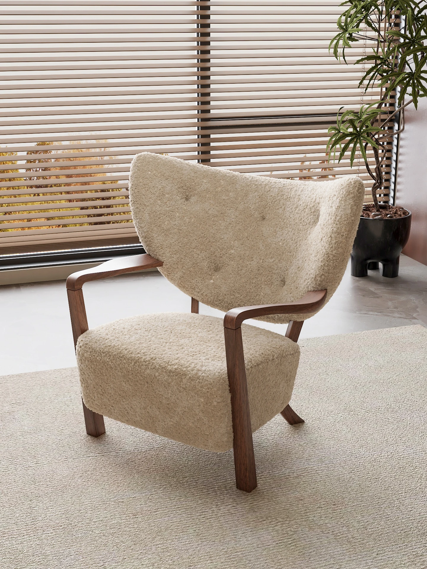 Vintage Walnut Wood Leisure Chair - Designer Creative Solid Wood Retro Armchair with Lambswool Upholstery for Living Room and Bedroom - Perfect for Cozy Relaxation