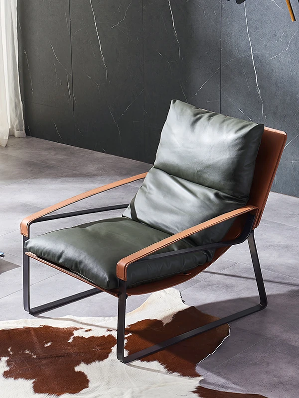 Original Italian Minimalist Sofa Chair - Modern Simple Design with Metal Frame, Genuine Leather, and Luxurious Down Cushion - Perfect for Your Living Room Relaxation