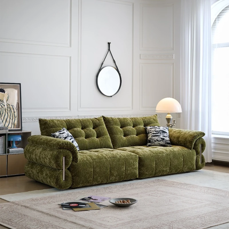2025 New Vintage French Grande Sofa - Chic Italian Style Chenille Velvet Green Sofa for Small Living Rooms