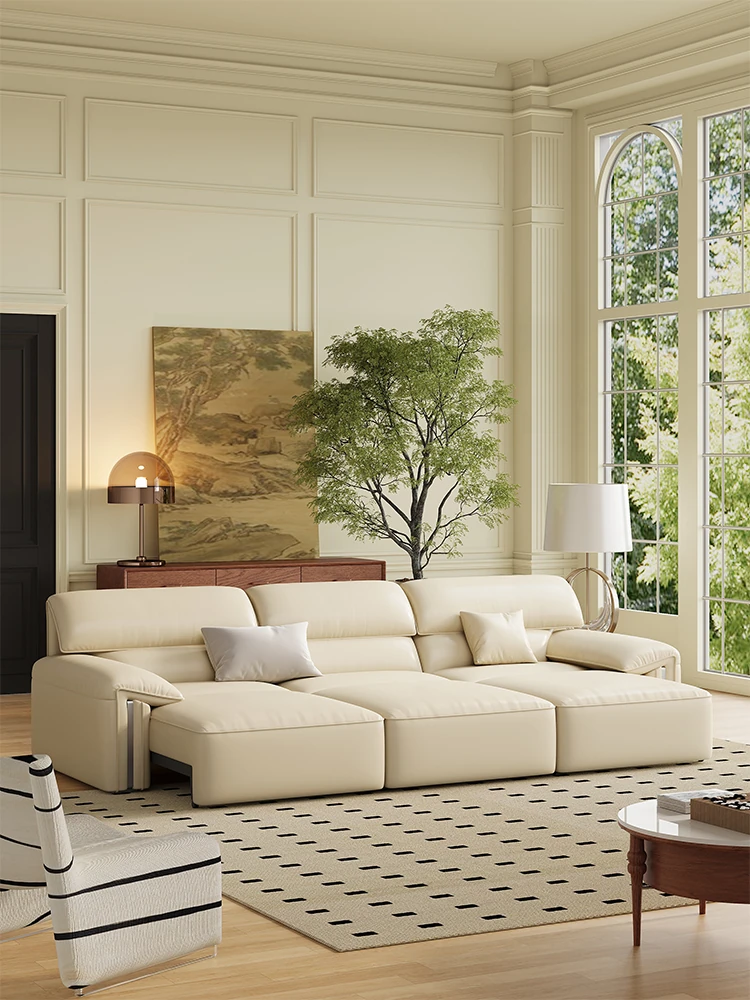Genuine Leather Electric Multifunctional Sofa Bed - Italian Elegant Design, Versatile Two-in-One Use, Spacious Elephant Ear Style, Wall-Hugging & Extendable for Your Living Room