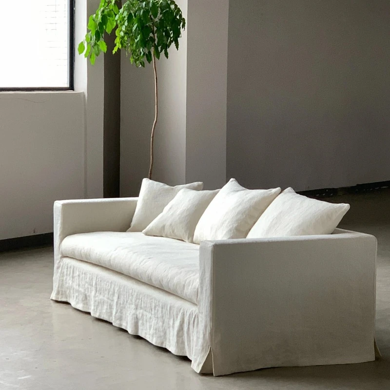 2025 New French Vintage Fully Removable Washable Sofa - Soft White Linen Fabric with Down Filling, Perfect for Cozy Small Apartments and Guesthouses
