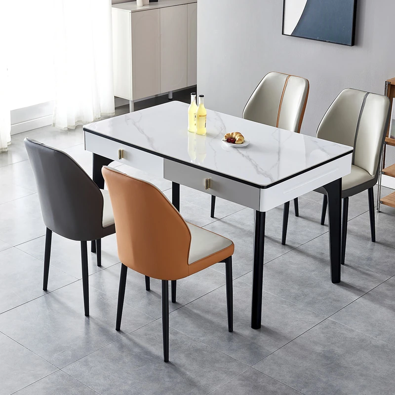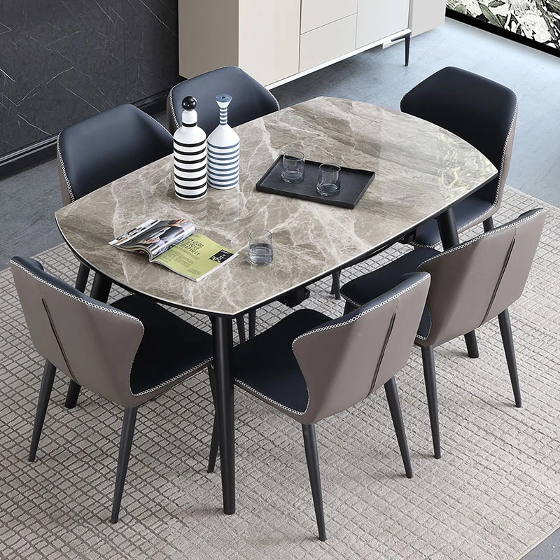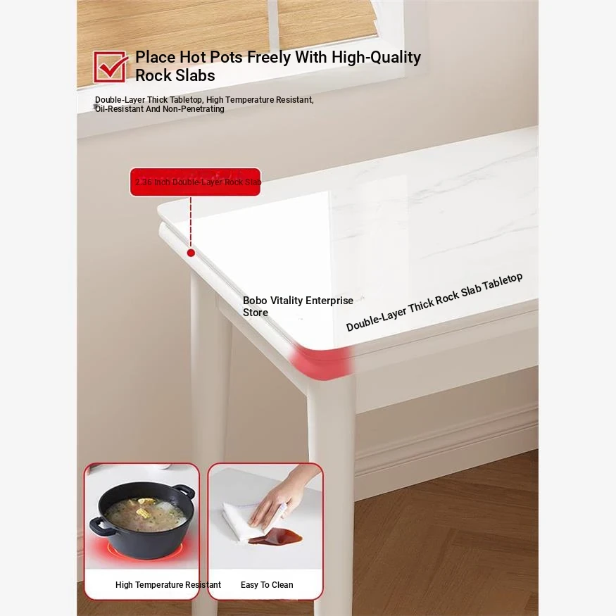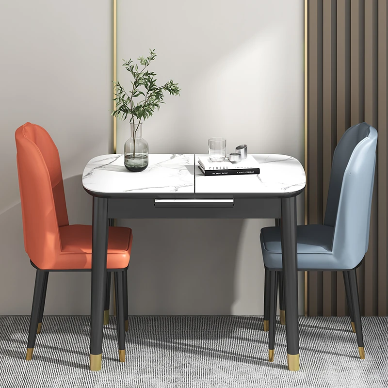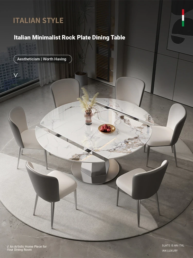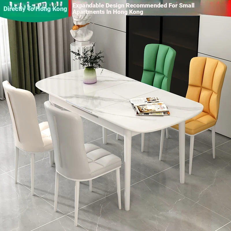 Modern Minimalist Light Luxury Rock Slab Dining Table and Chair Set for Small Spaces - Versatile Expandable Square and Round Adjustable Dining Table for Living Room Use