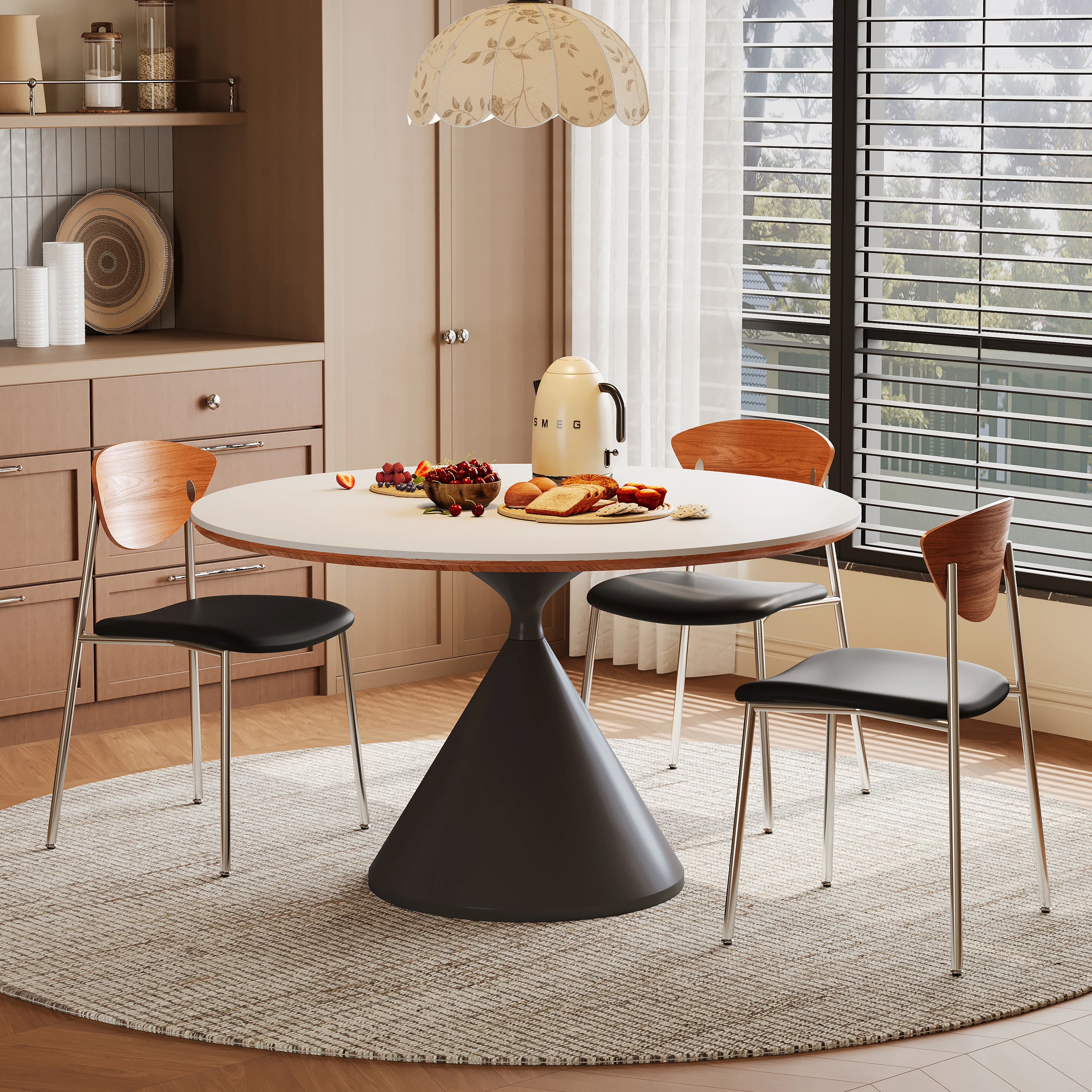 Modern Minimalist Round Dining Table Set with Lazy Susan - Full Slate Base, Ideal for Small Spaces, Vintage Cream Style for Home Use