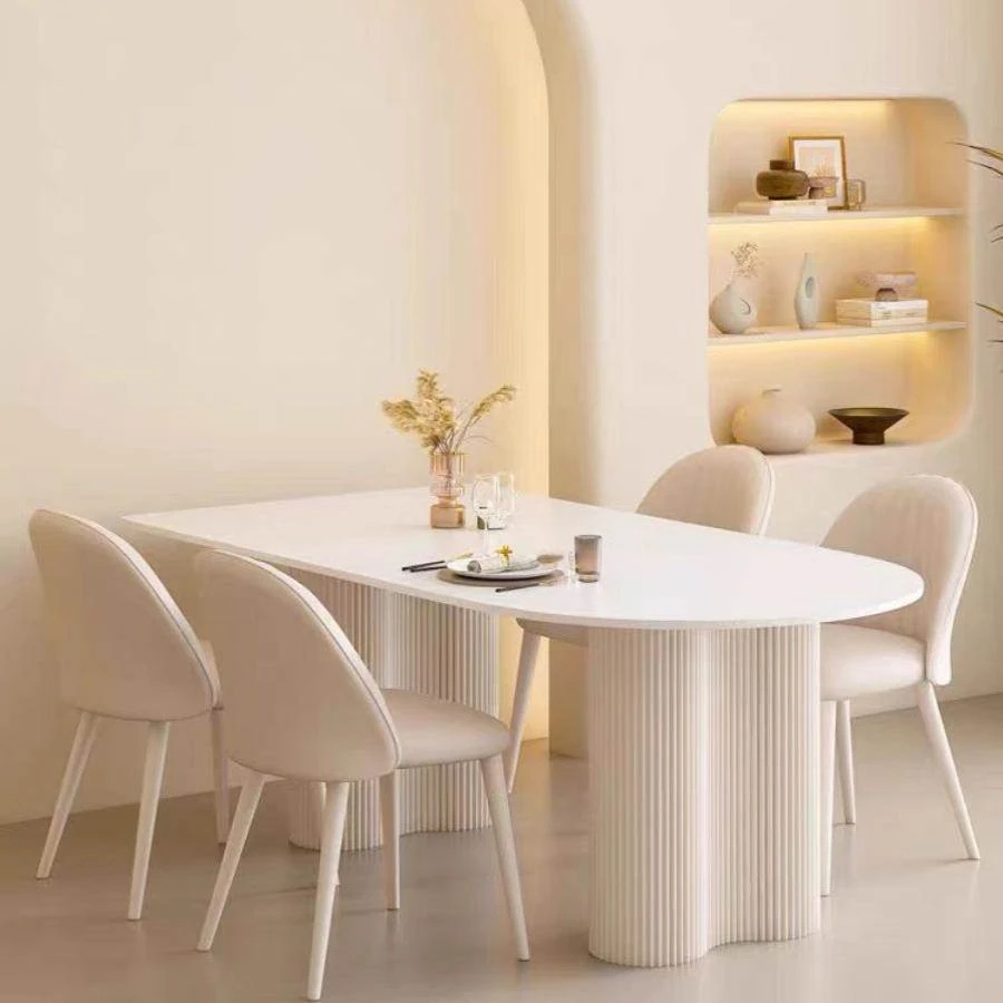 Elegant Oval Dining Table Set for Small Spaces - Modern Minimalist Cream Aesthetic - Perfect for Stylish Homes