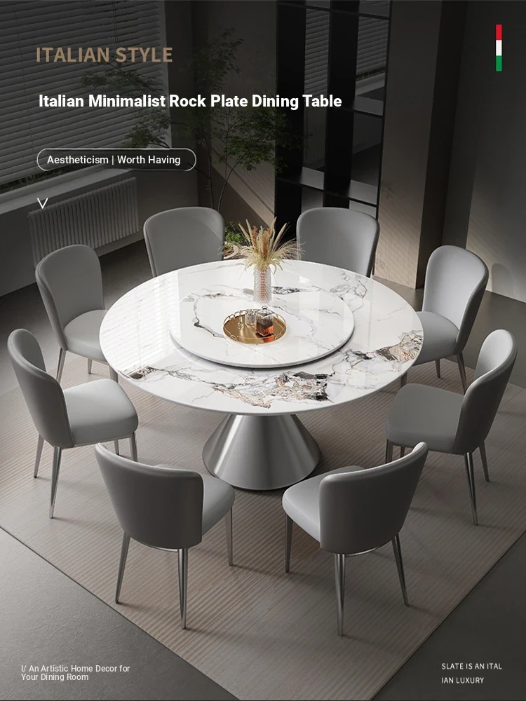 Modern Italian Luxury Round Dining Table Set with Rotating Plate - Space-Saving Design for Small Homes, Featuring Ultra-Crystal Stone Finish, Perfect for Contemporary Living Spaces.