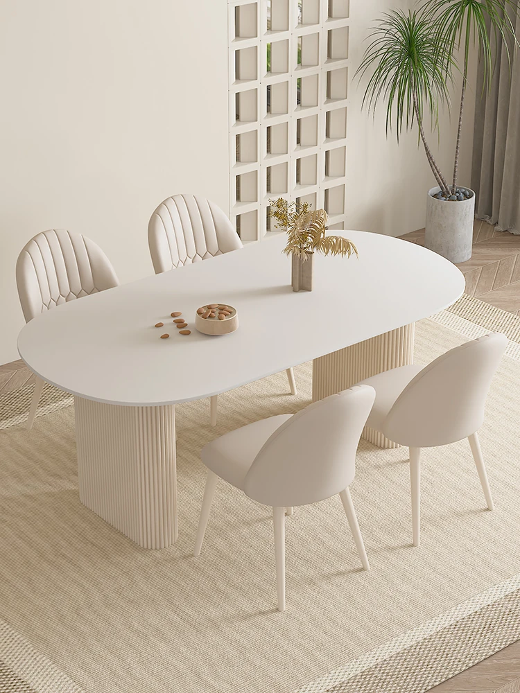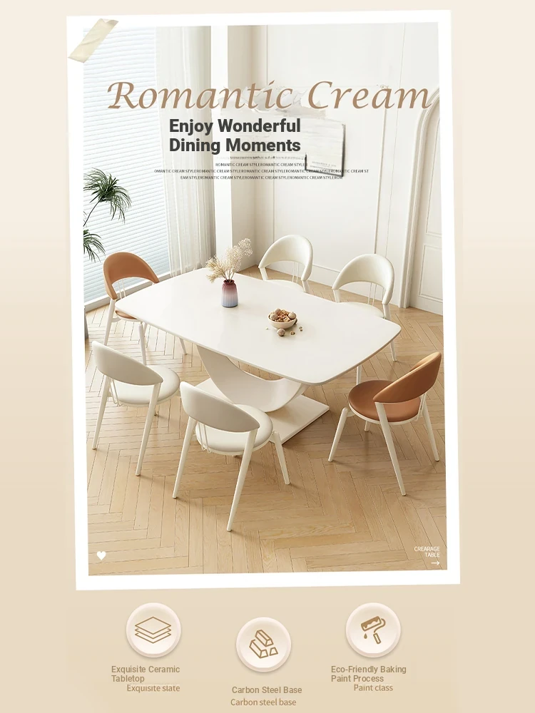 2024 New Creamy Style Dining Table and Chair Set - Modern Minimalist Design with High-End Rock Plate for Small Homes