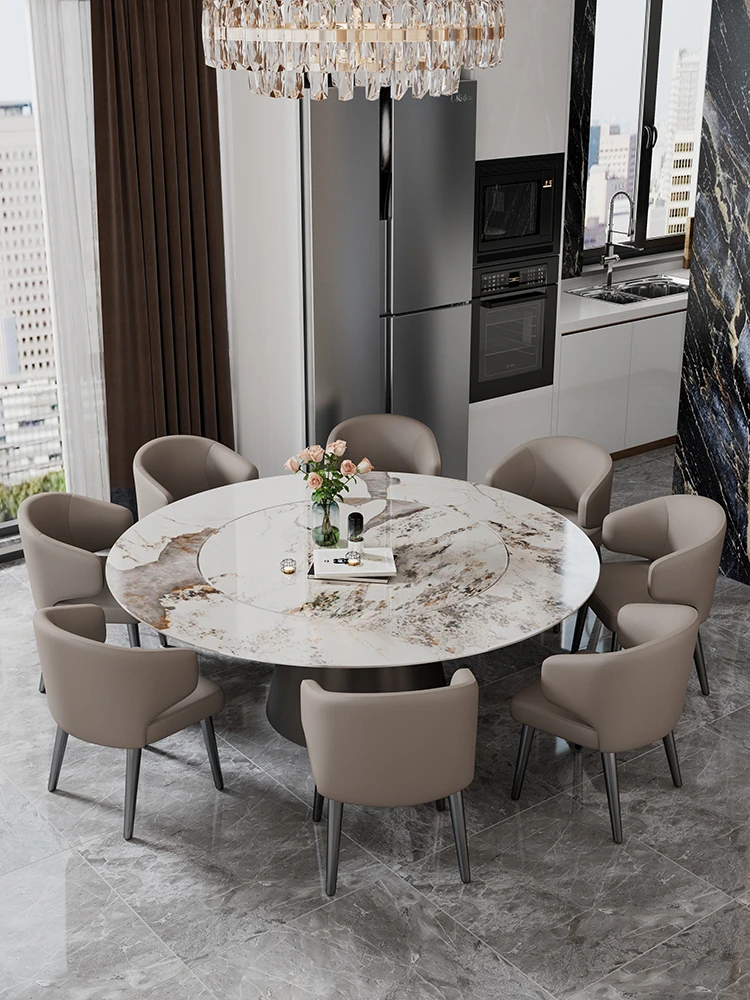 Modern Italian Luxury Round Dining Table with Built-in Rotating Electric Induction Cooktop - Stylish 2m Circular Table for Home Use, Perfect for Family Gatherings and Entertaining