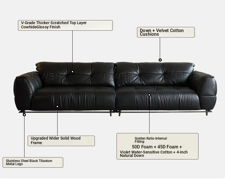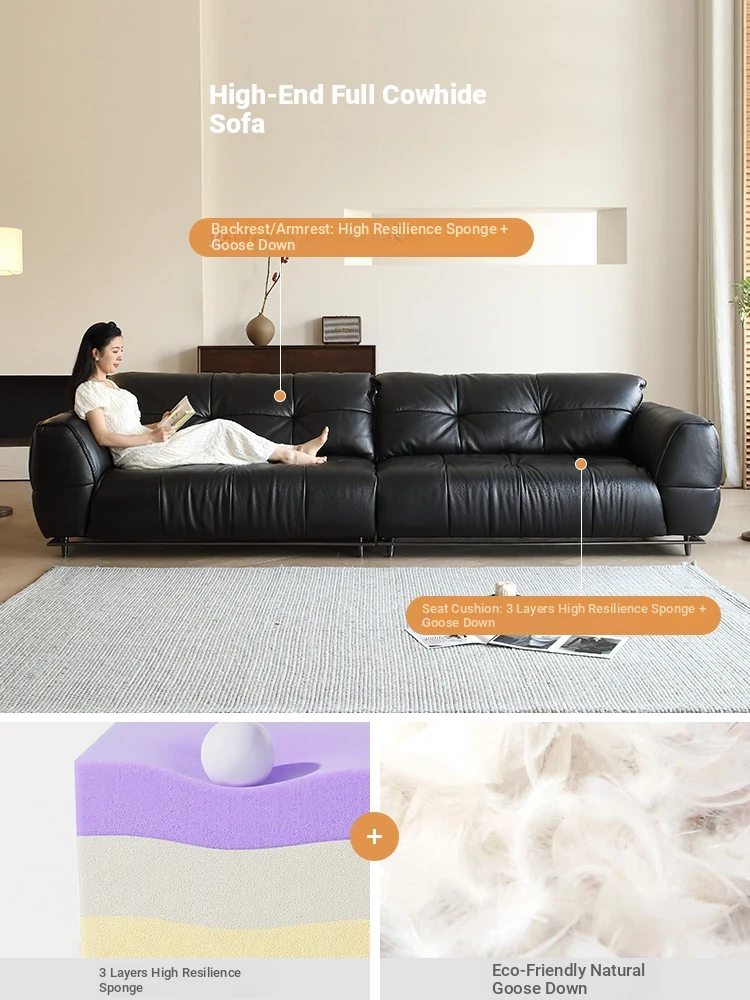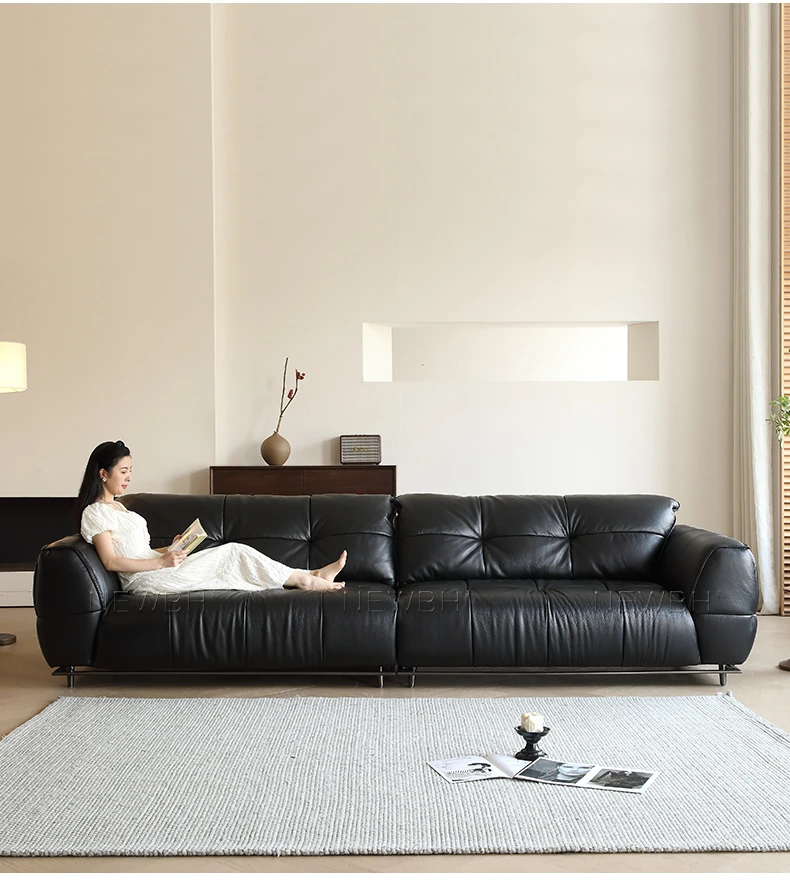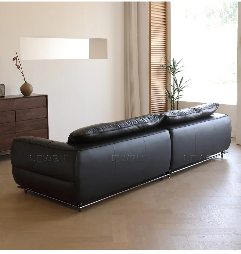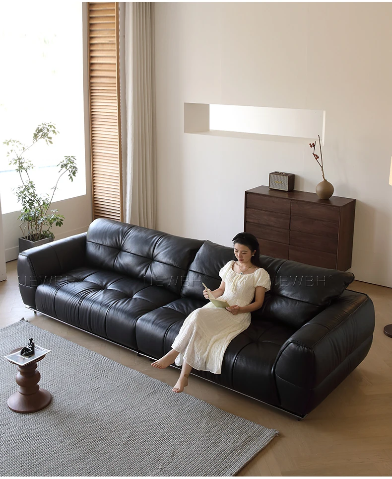2025 New Arrival: All-Black Premium Leather Sofa - Modern Minimalist Design with Cloud-Like Comfort for Your Living Room