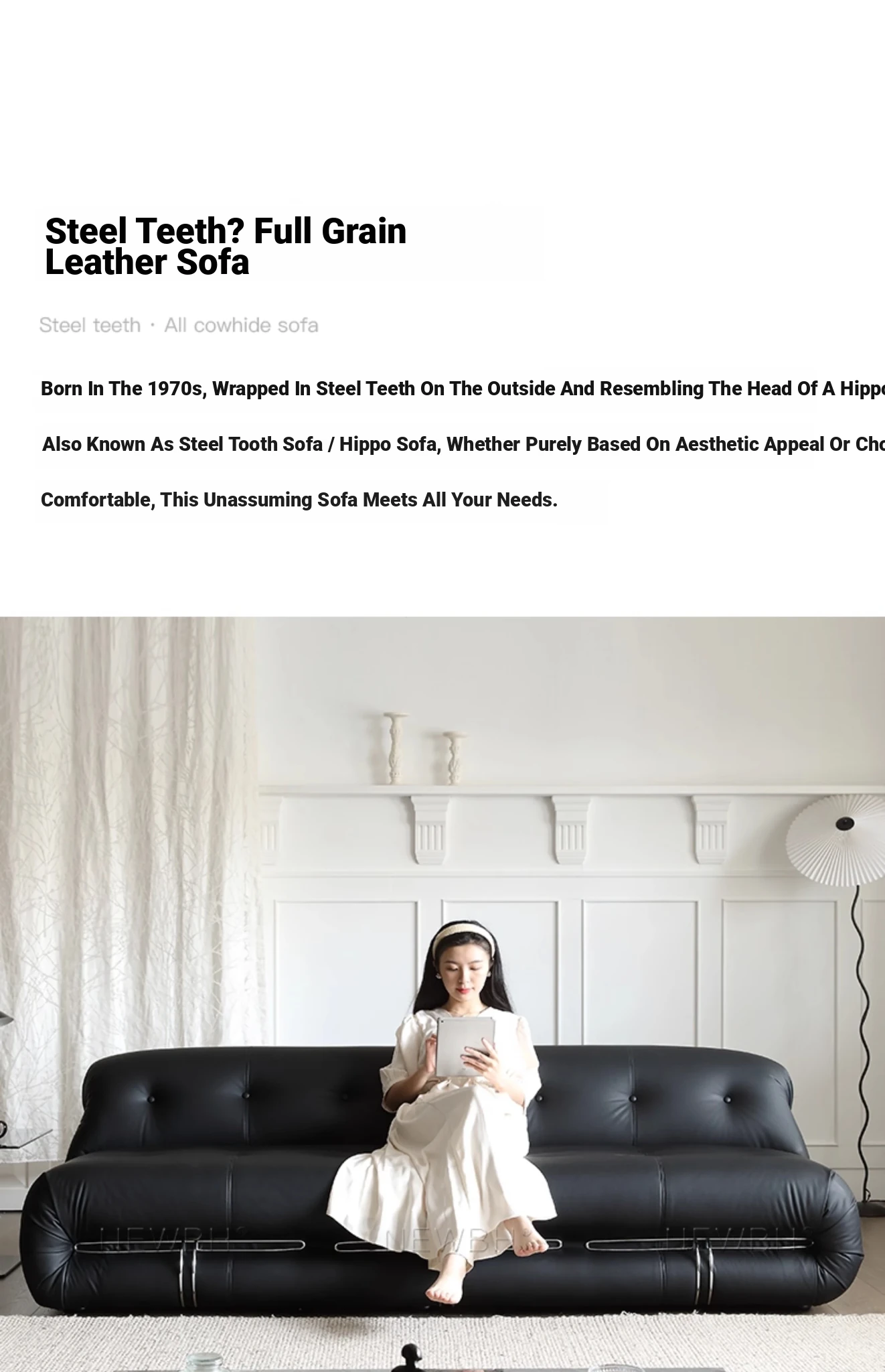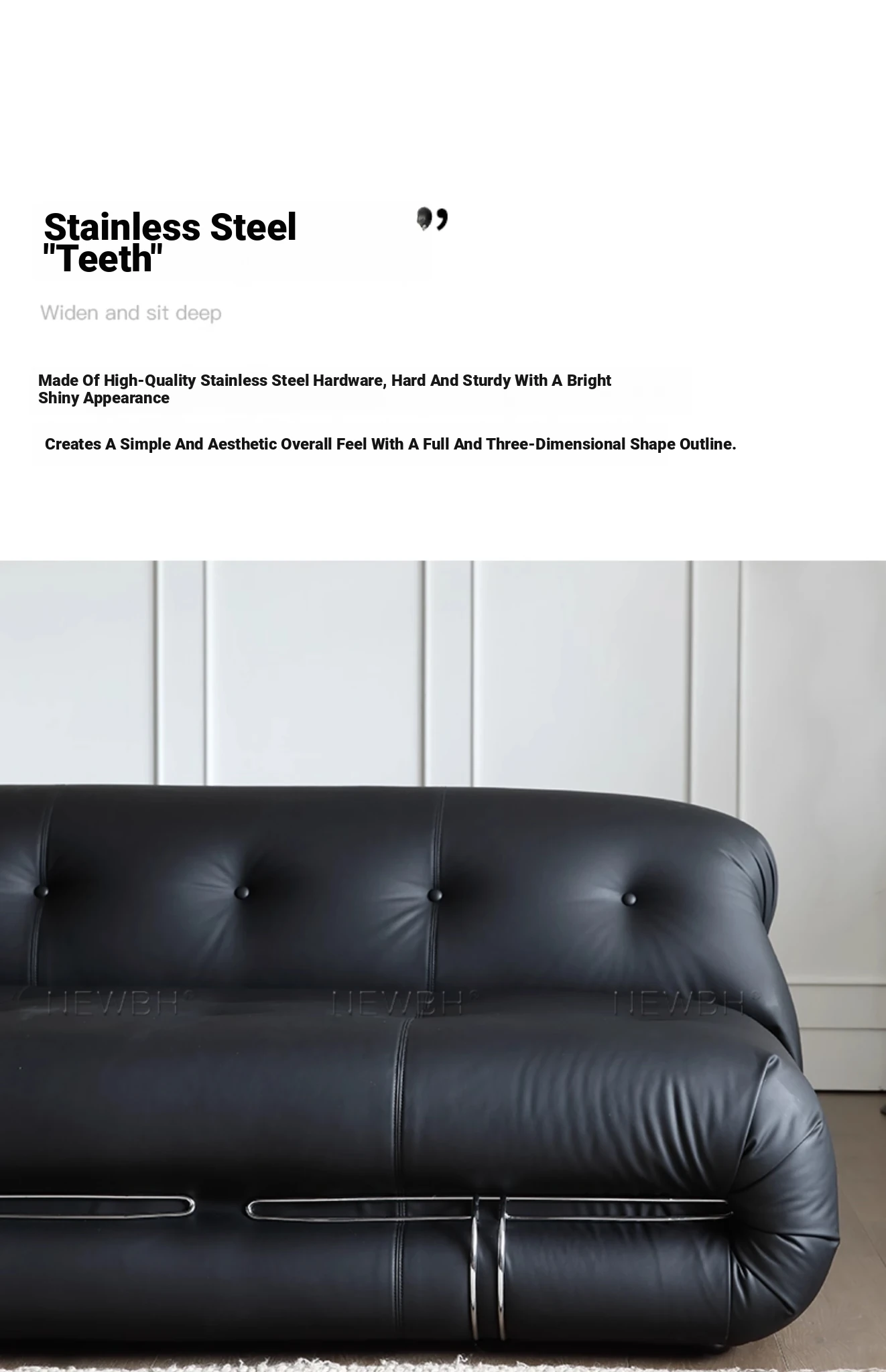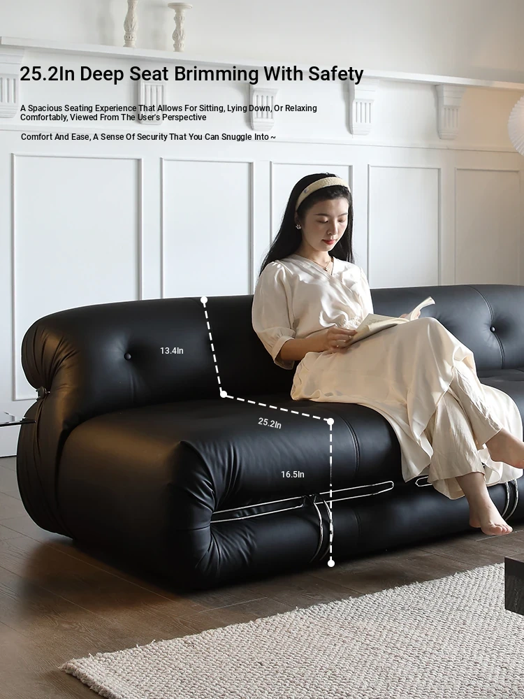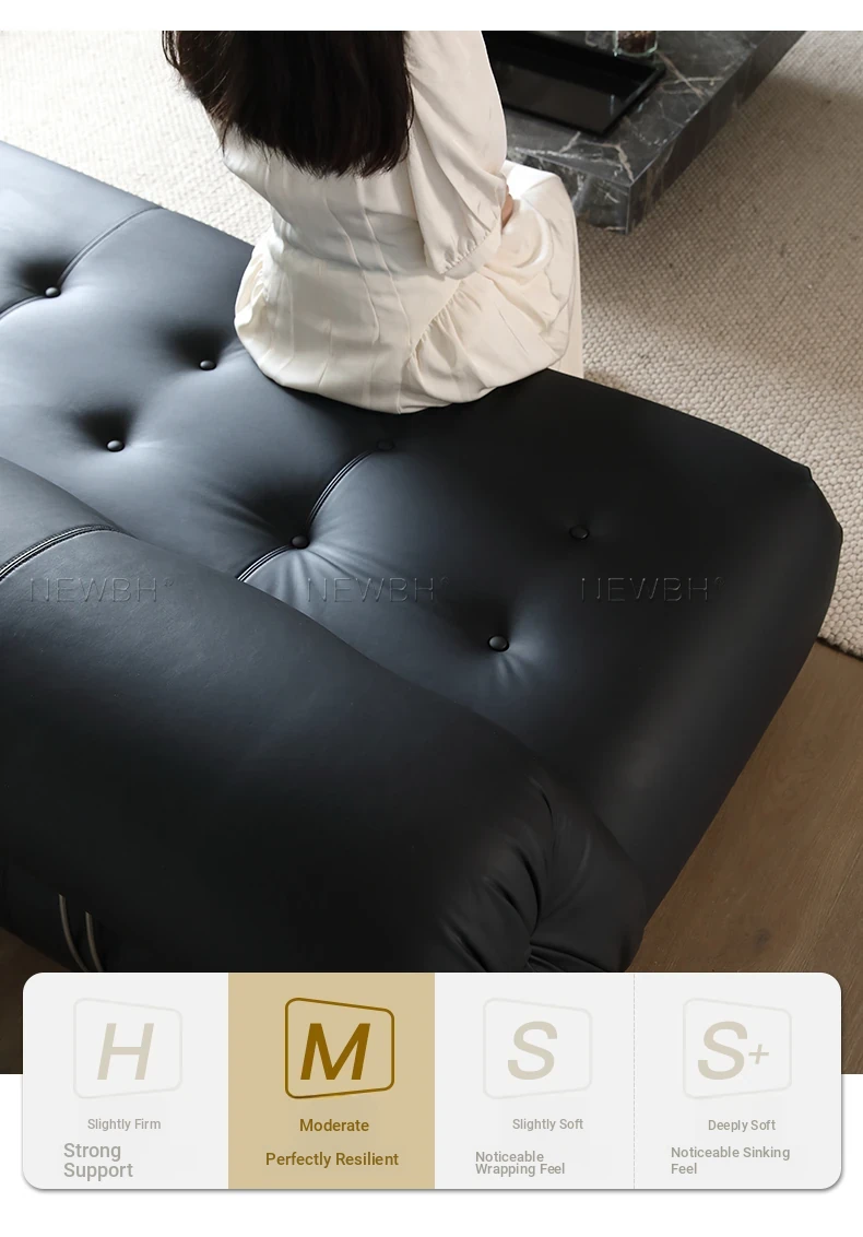 Designer Cassina Hippo Steel-toothed Full Grain Leather Sofa - Black, Straight Line 3-Seater Living Room Sofa for Modern Elegance and Comfort