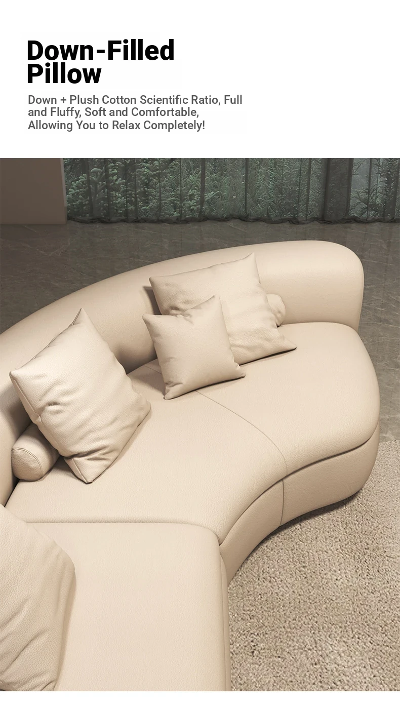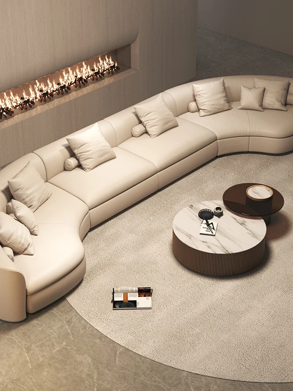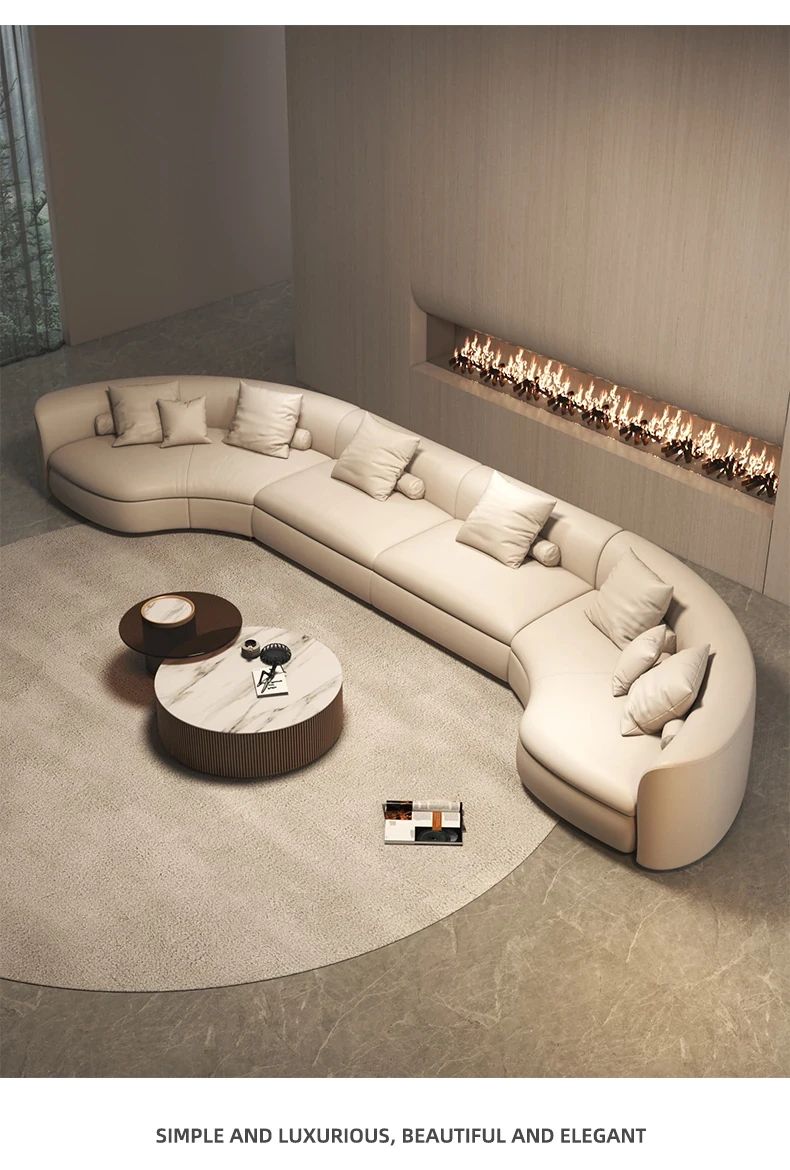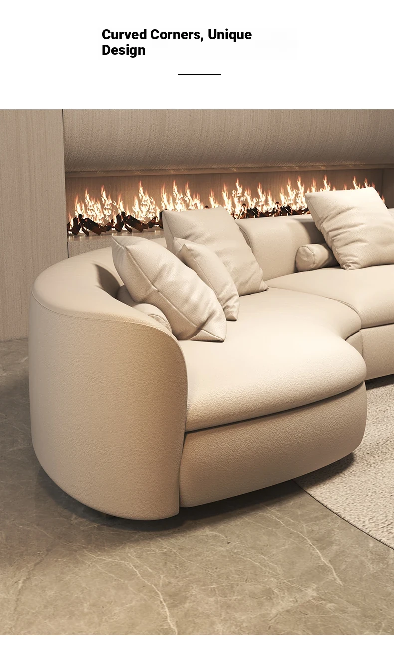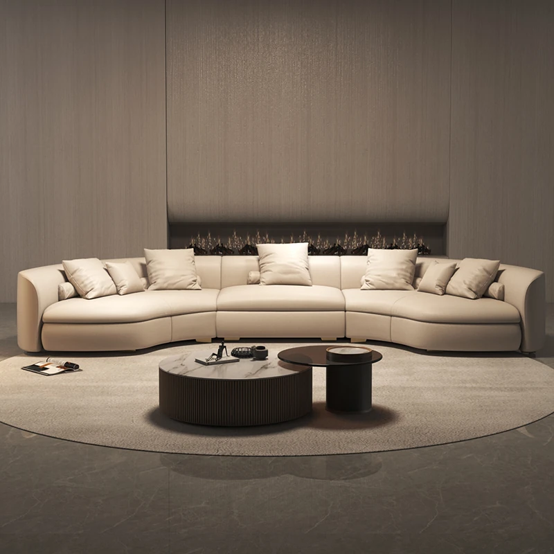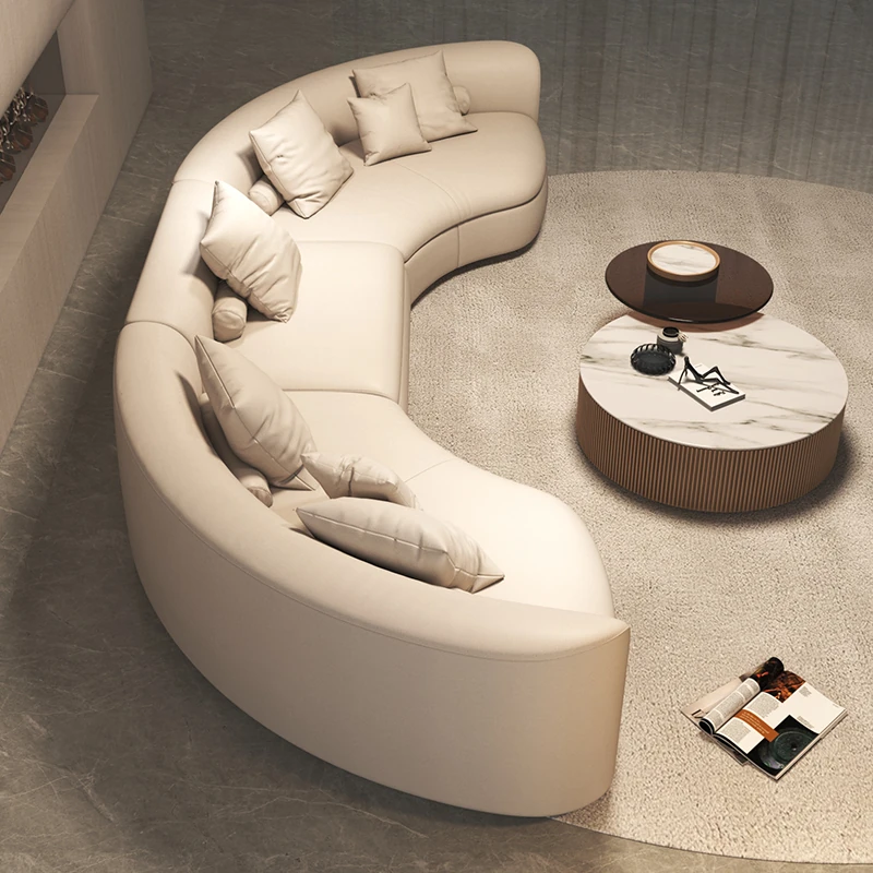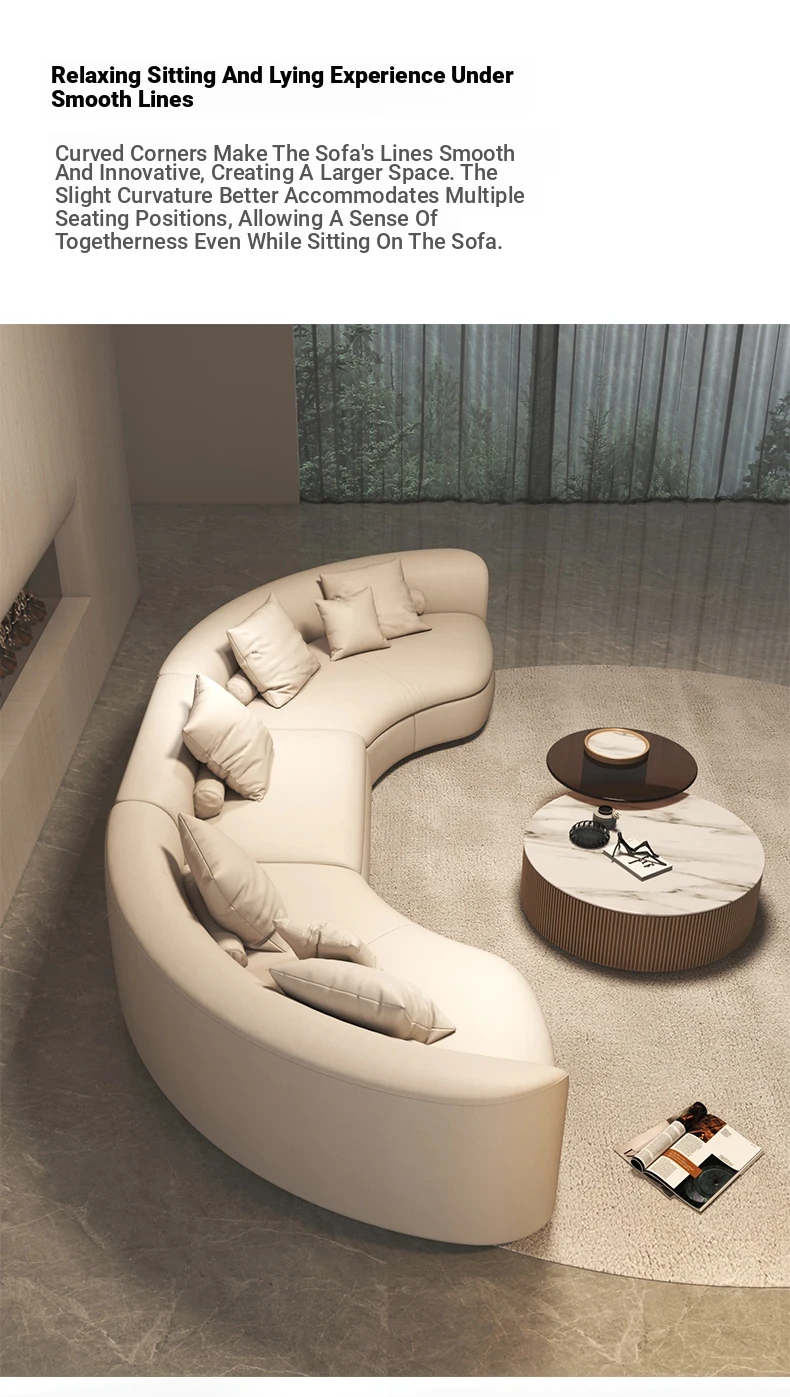 Designer Curved Leather Sofa Set – Unique Shaped Corner Sofa for Relaxation in Living Room – Perfect for Stylish Meetings and Discussions