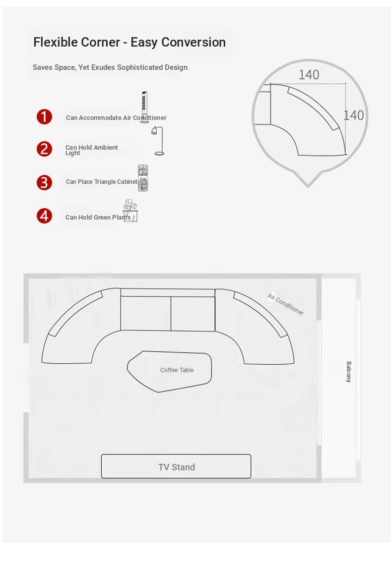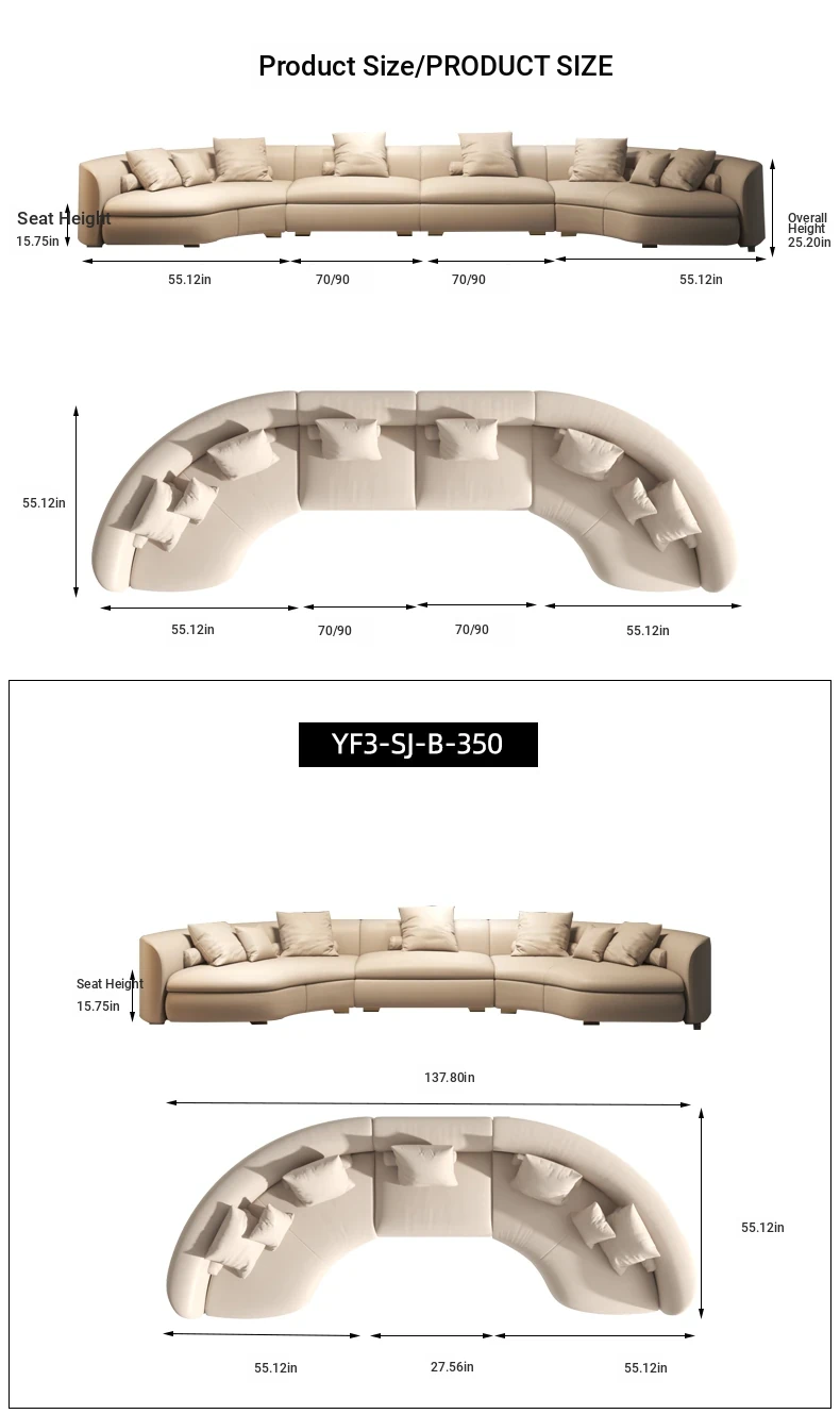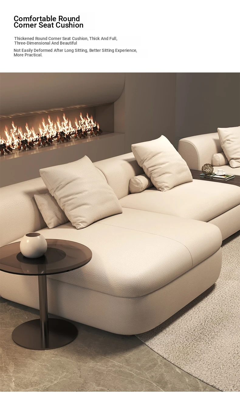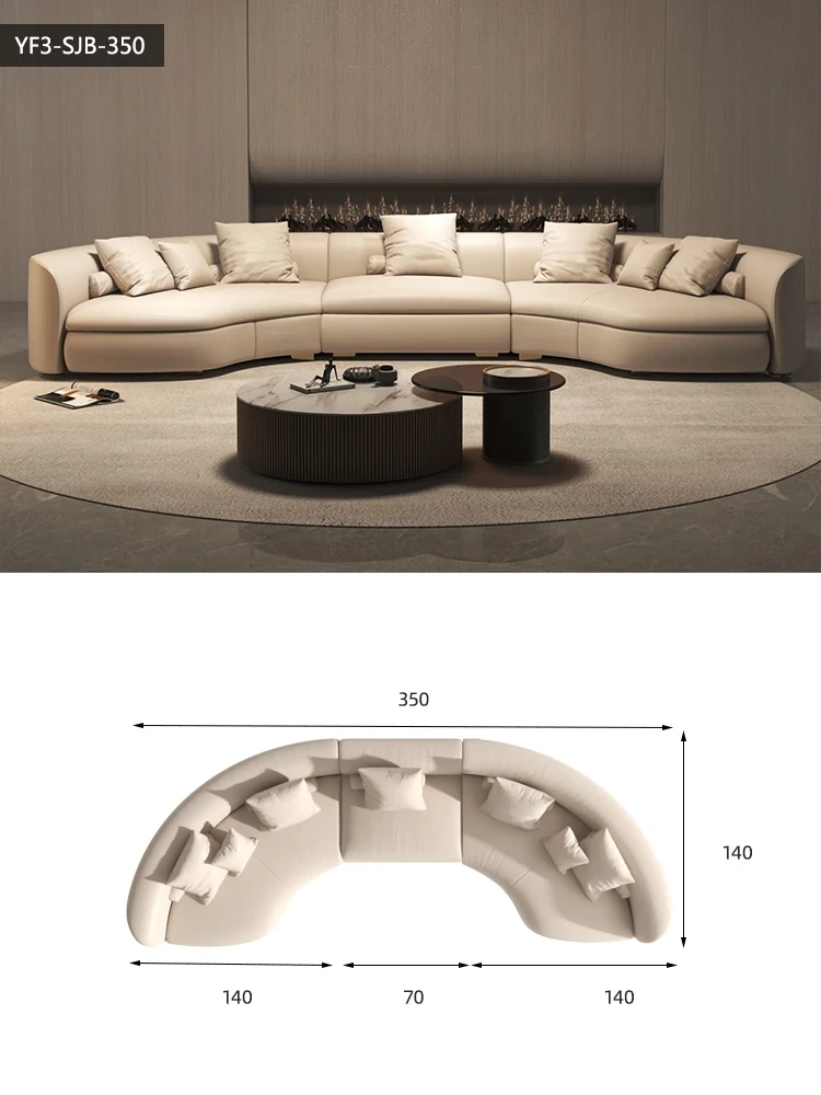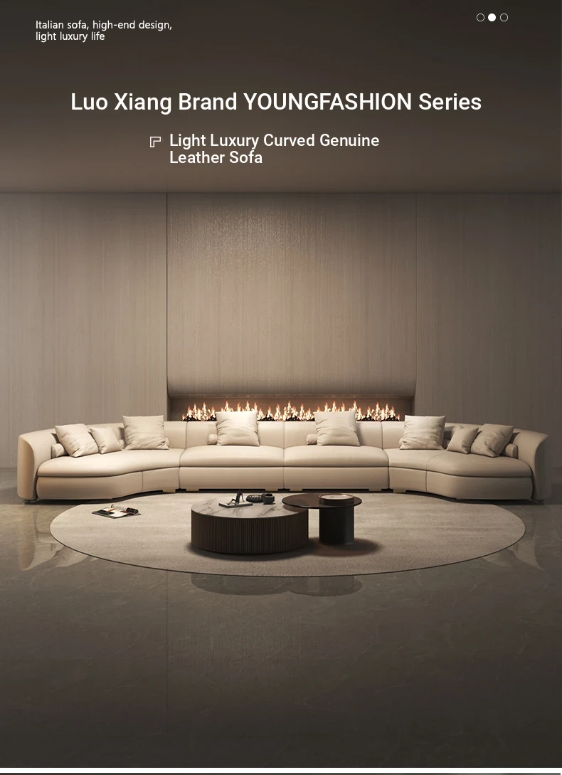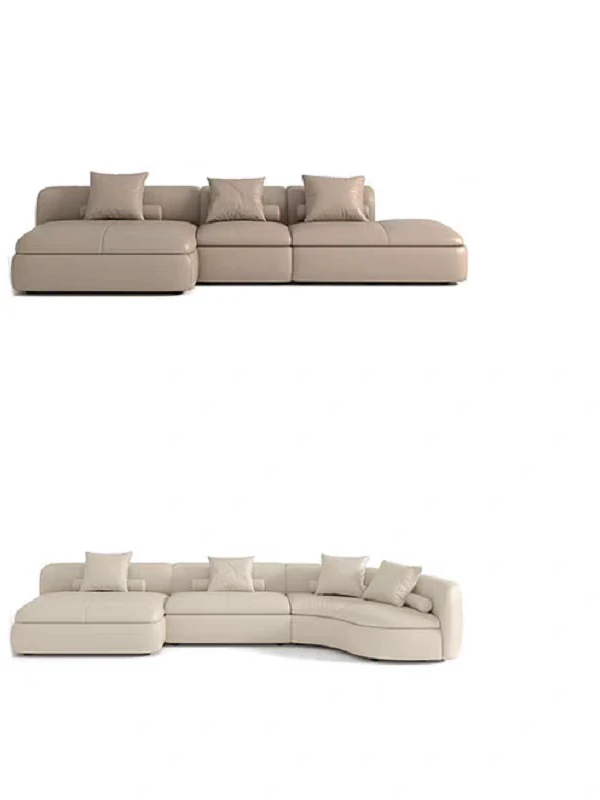 Designer Curved Leather Sofa Set – Unique Shaped Corner Sofa for Relaxation in Living Room – Perfect for Stylish Meetings and Discussions