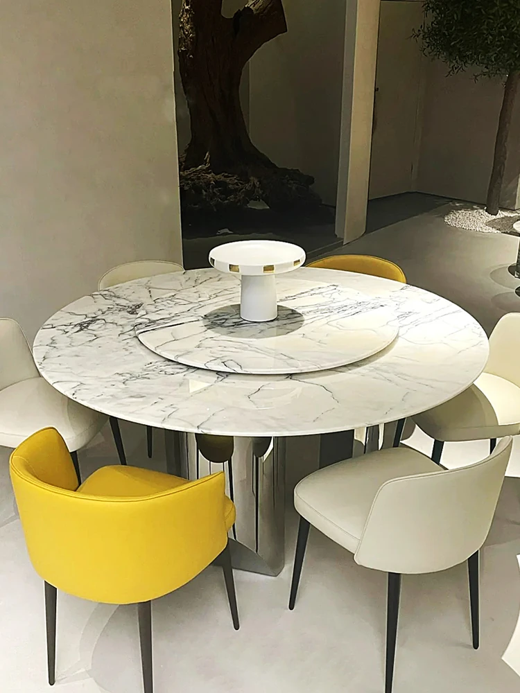 Elegant Round Dining Table Made of Natural Marble - Luxurious Villa Style, Perfect for Home Use, Featuring Premium Xiangxue Mei Stone for a High-End Feel