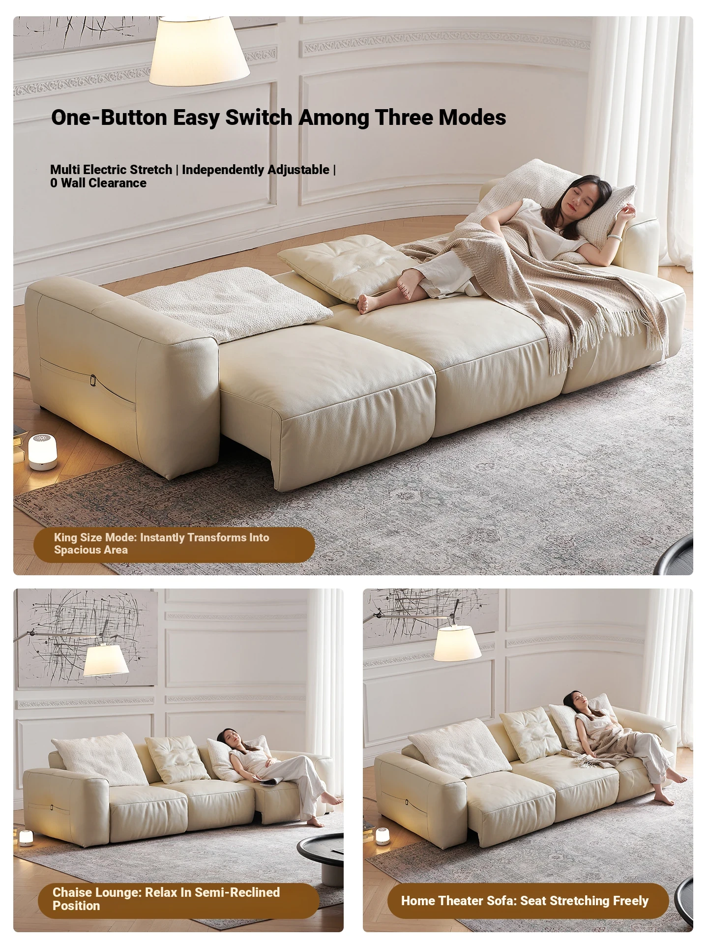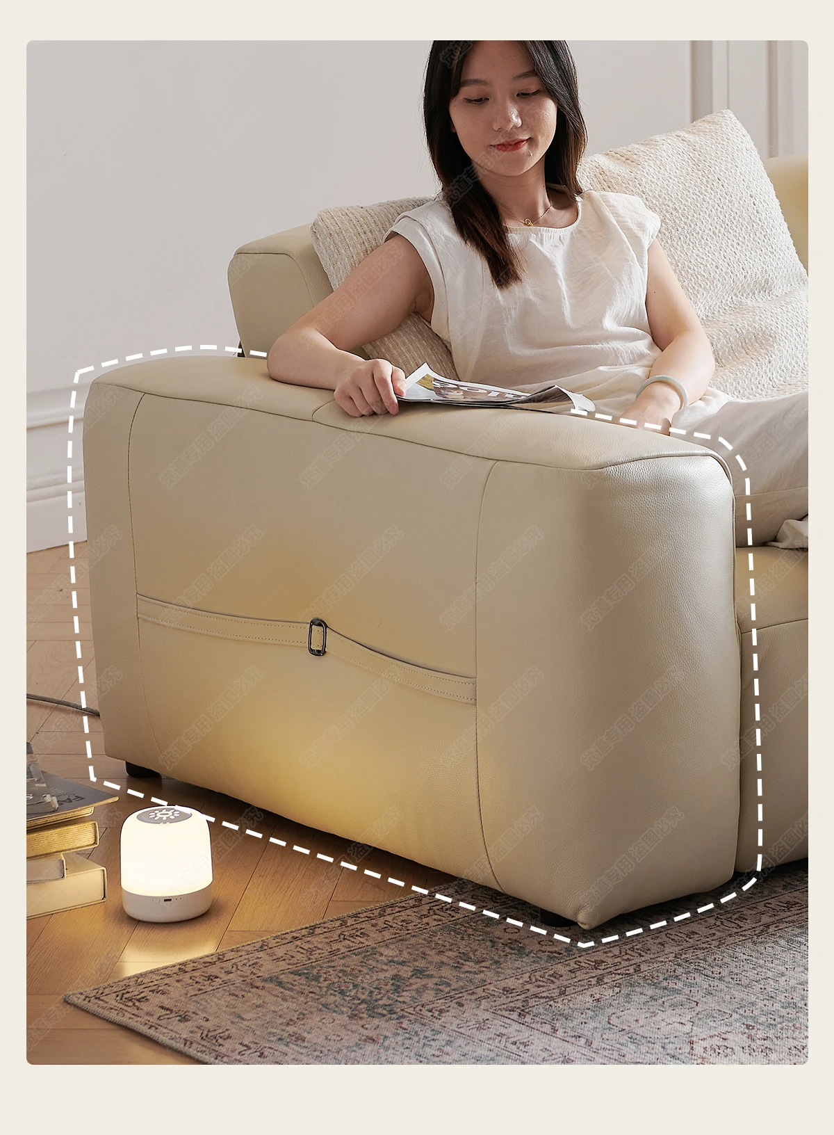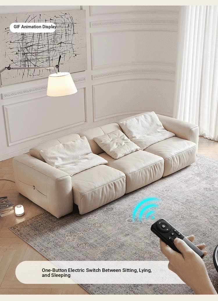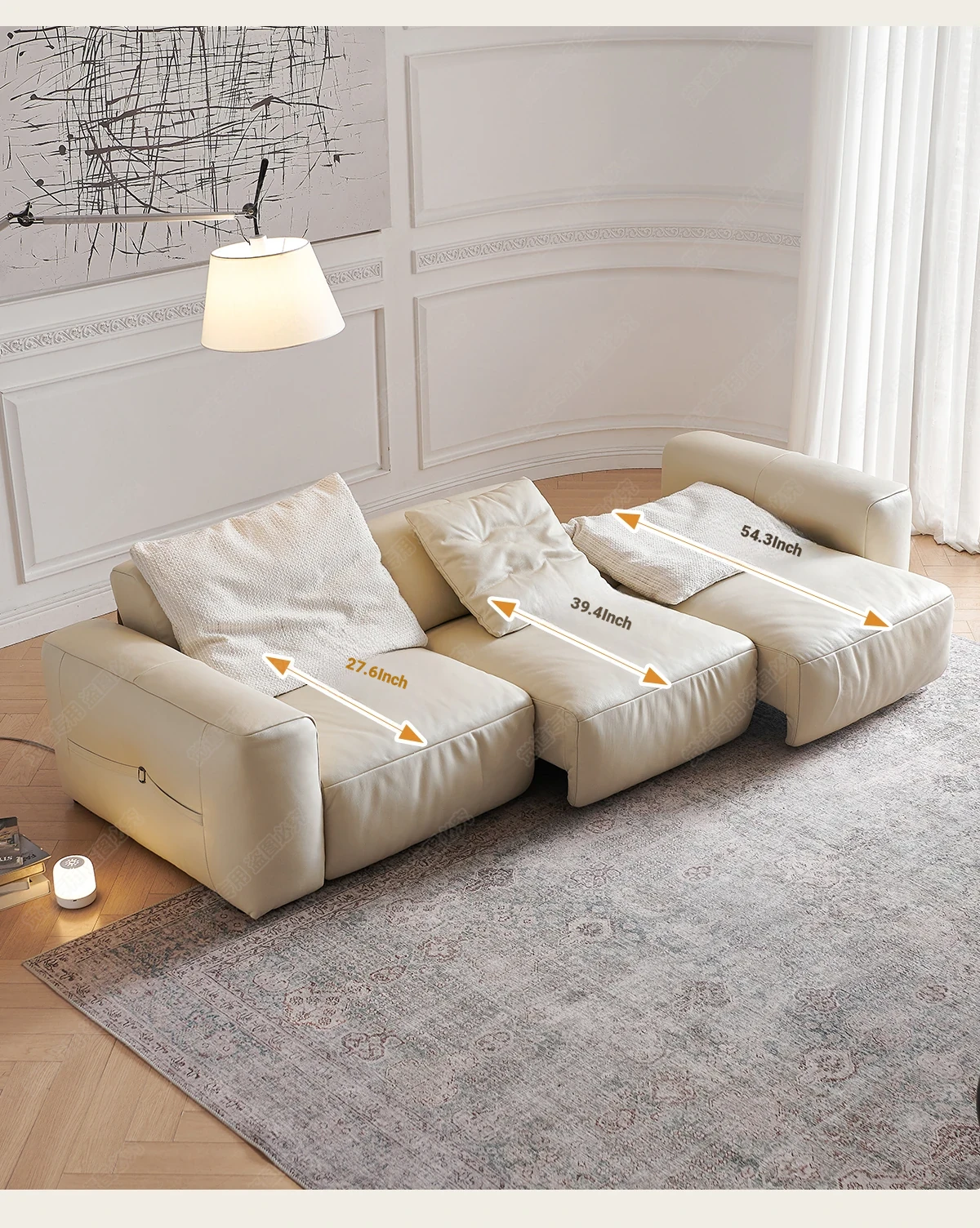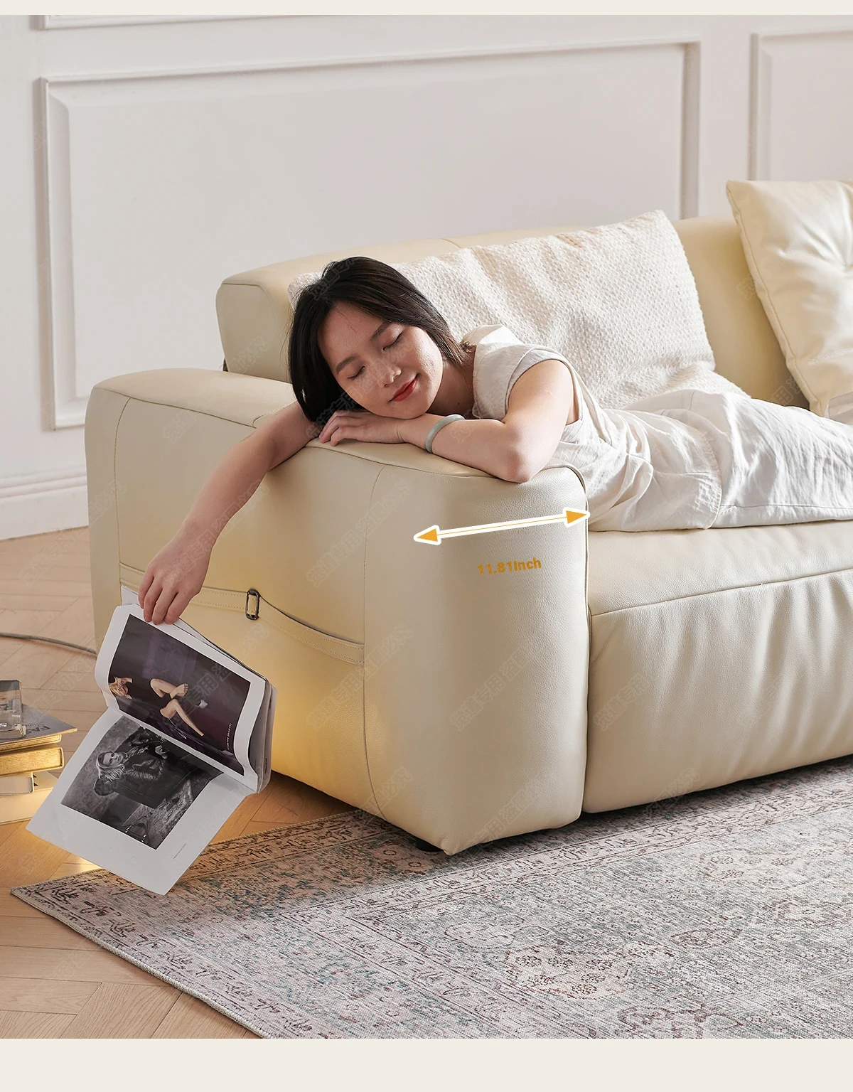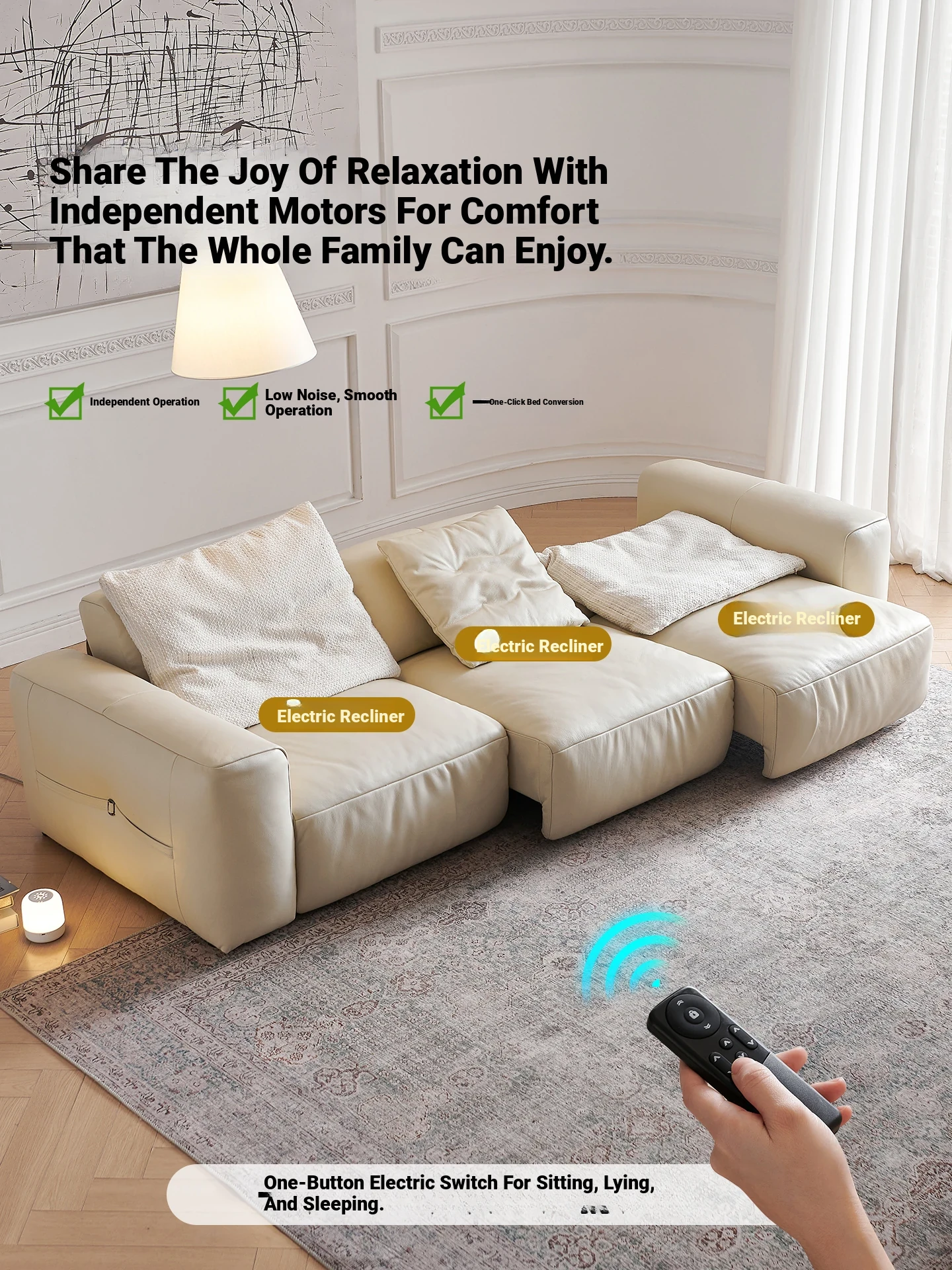 French Cream Style Genuine Leather Sofa Bed – Versatile, Adjustable, and Electric Reclining for Ultimate Comfort – Perfect for Three People!