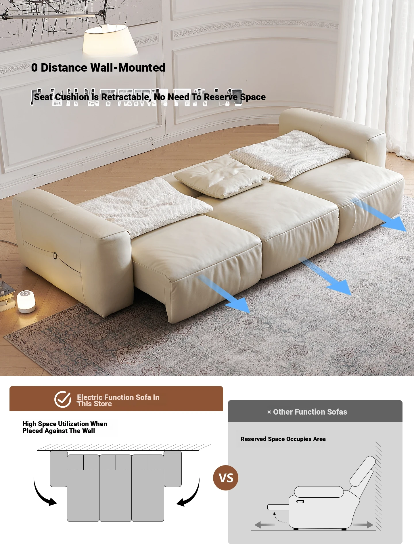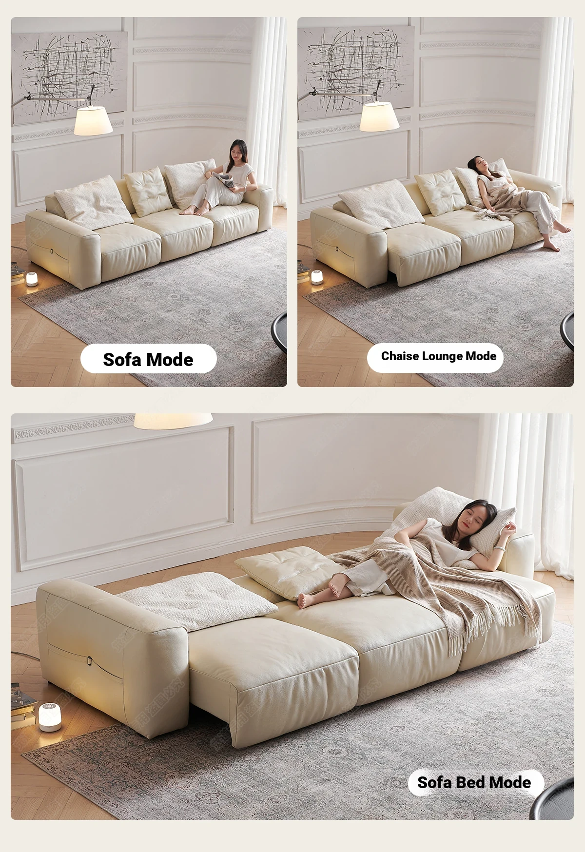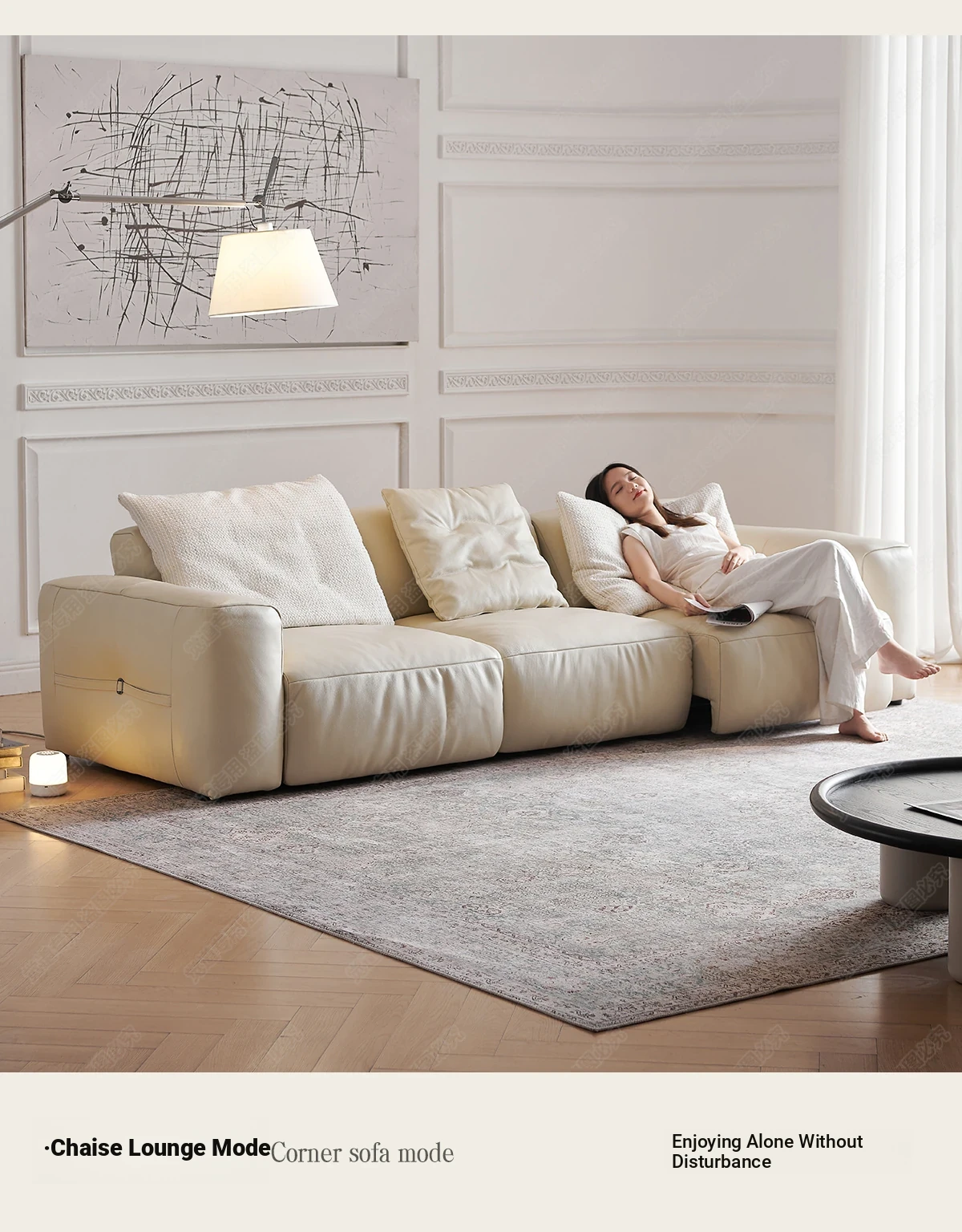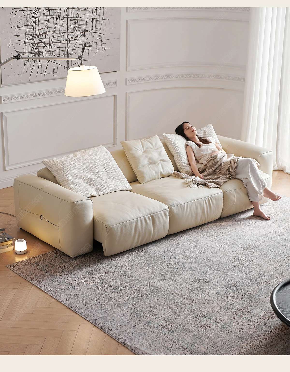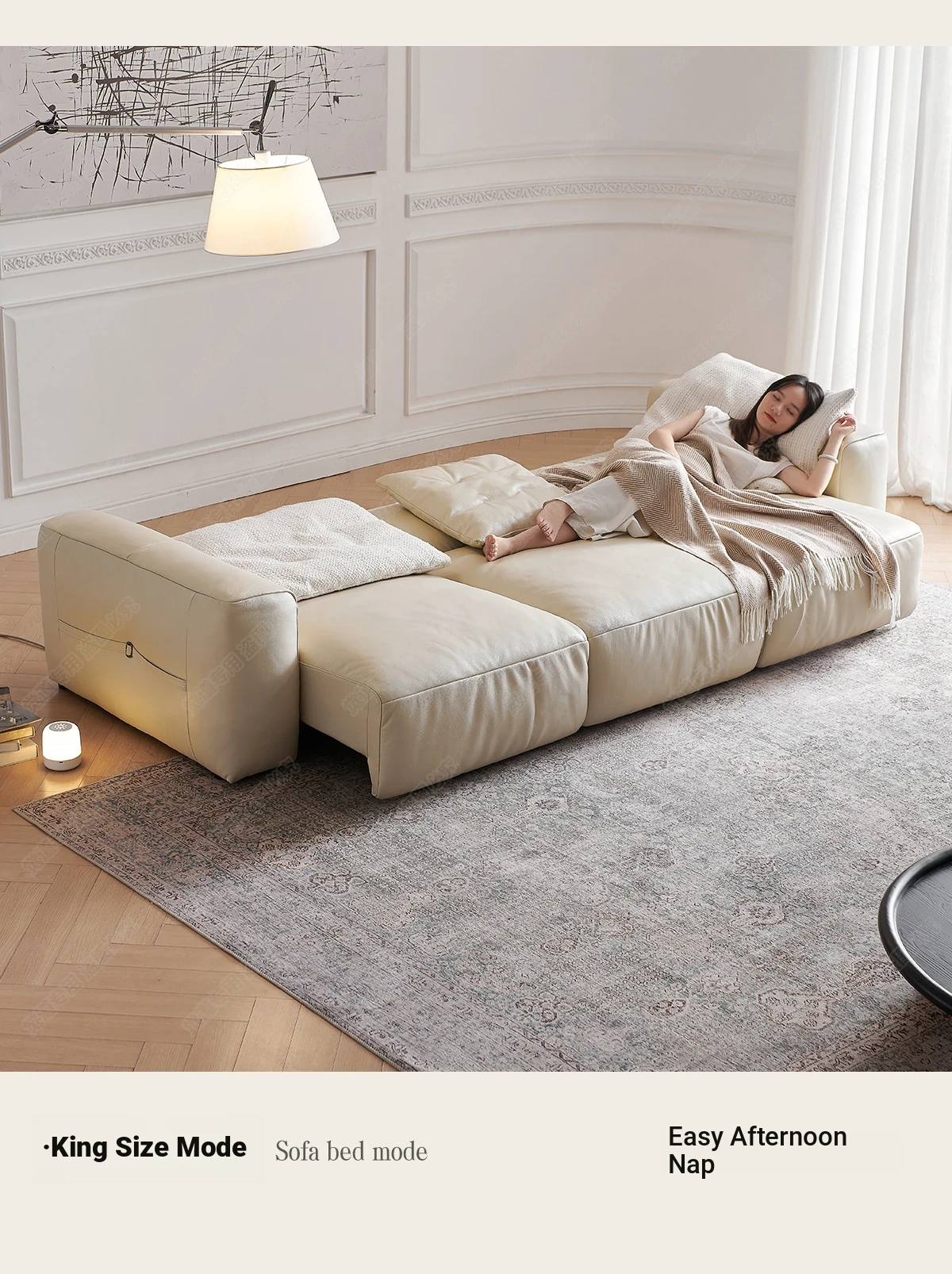 French Cream Style Genuine Leather Sofa Bed – Versatile, Adjustable, and Electric Reclining for Ultimate Comfort – Perfect for Three People!
