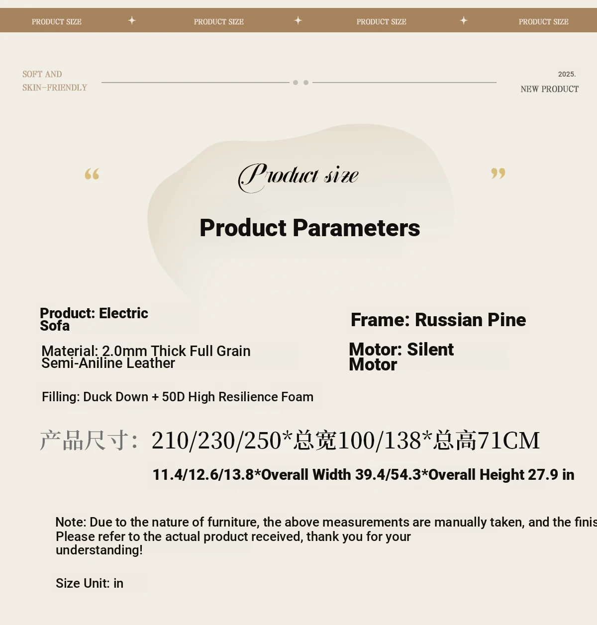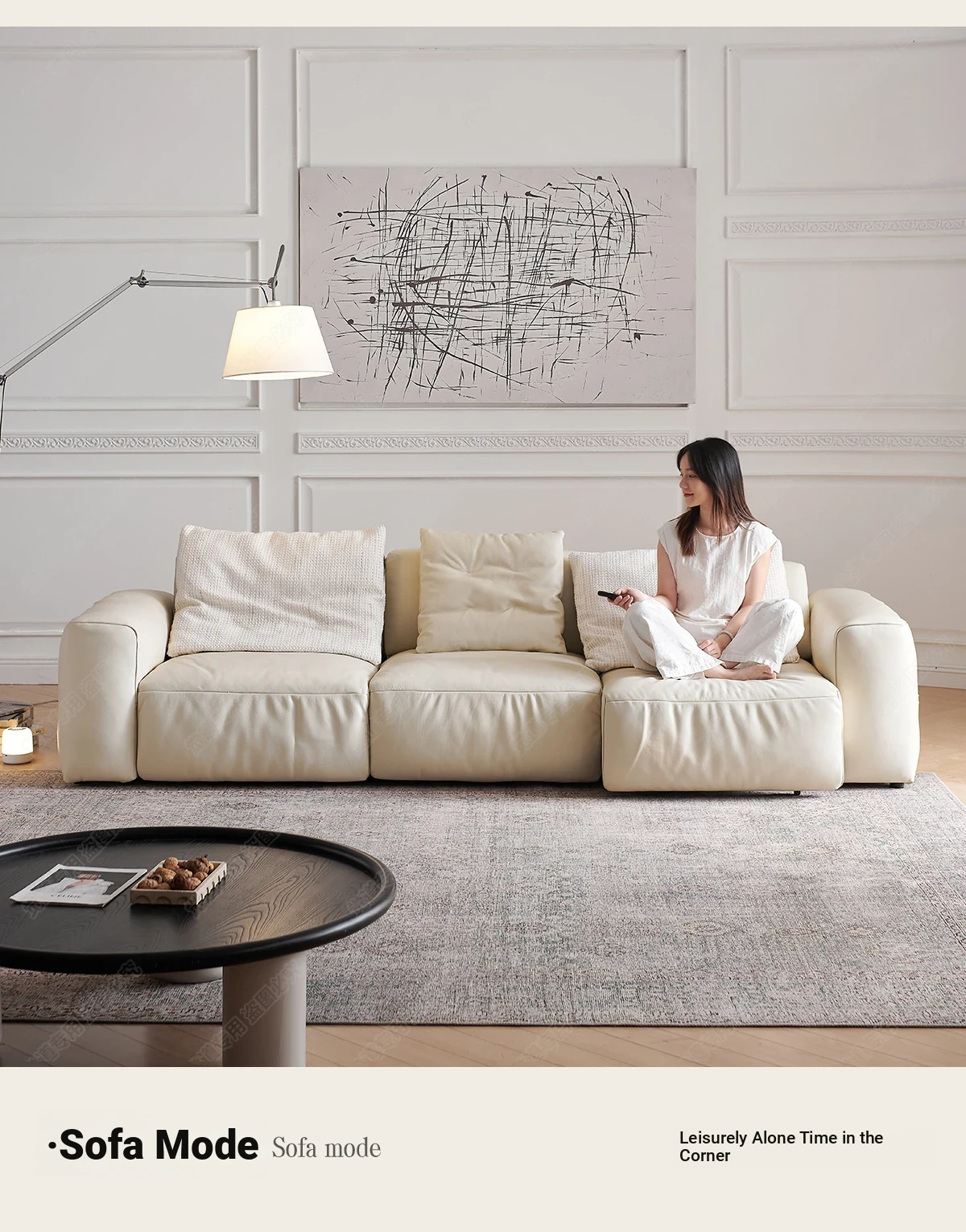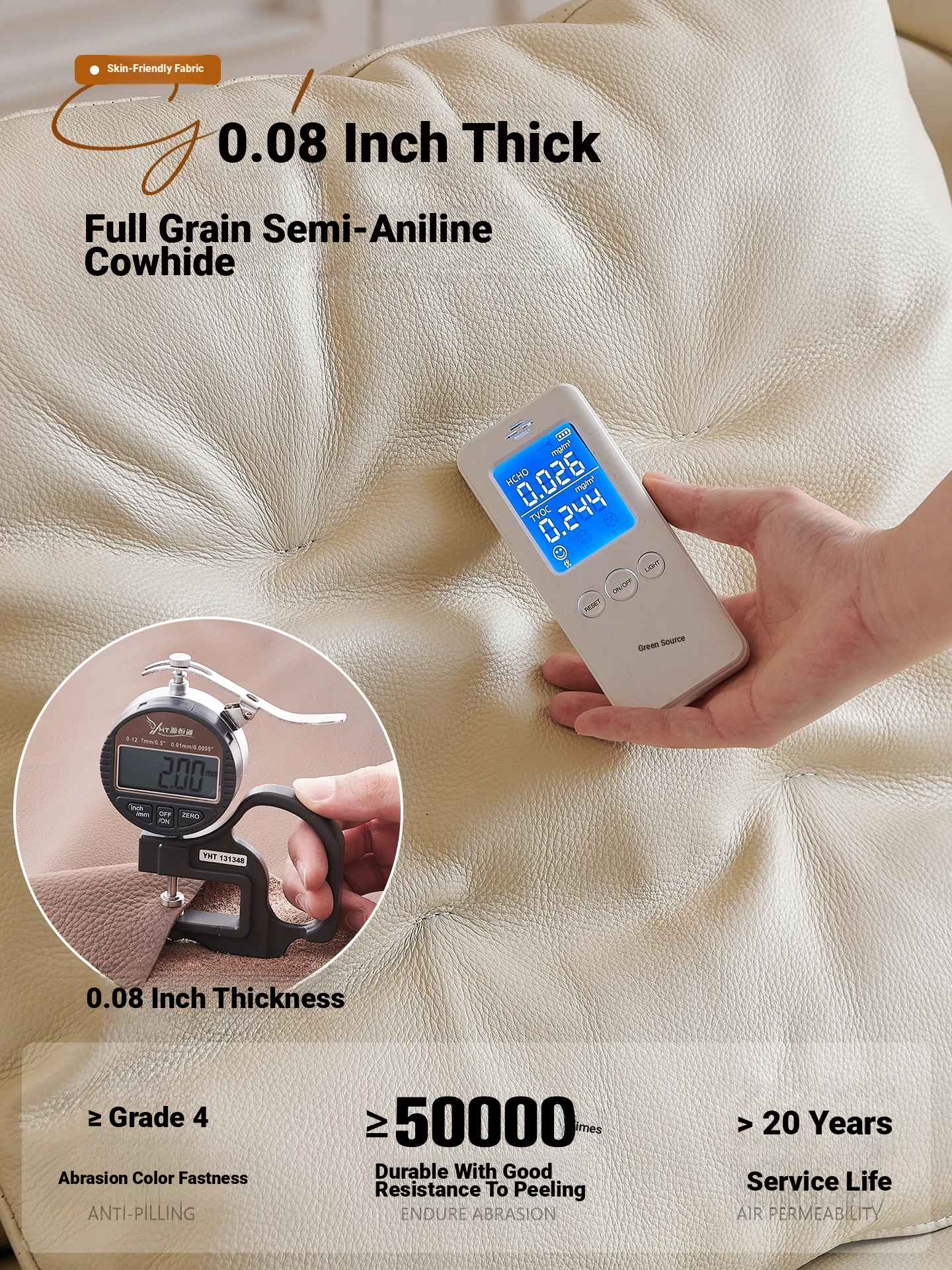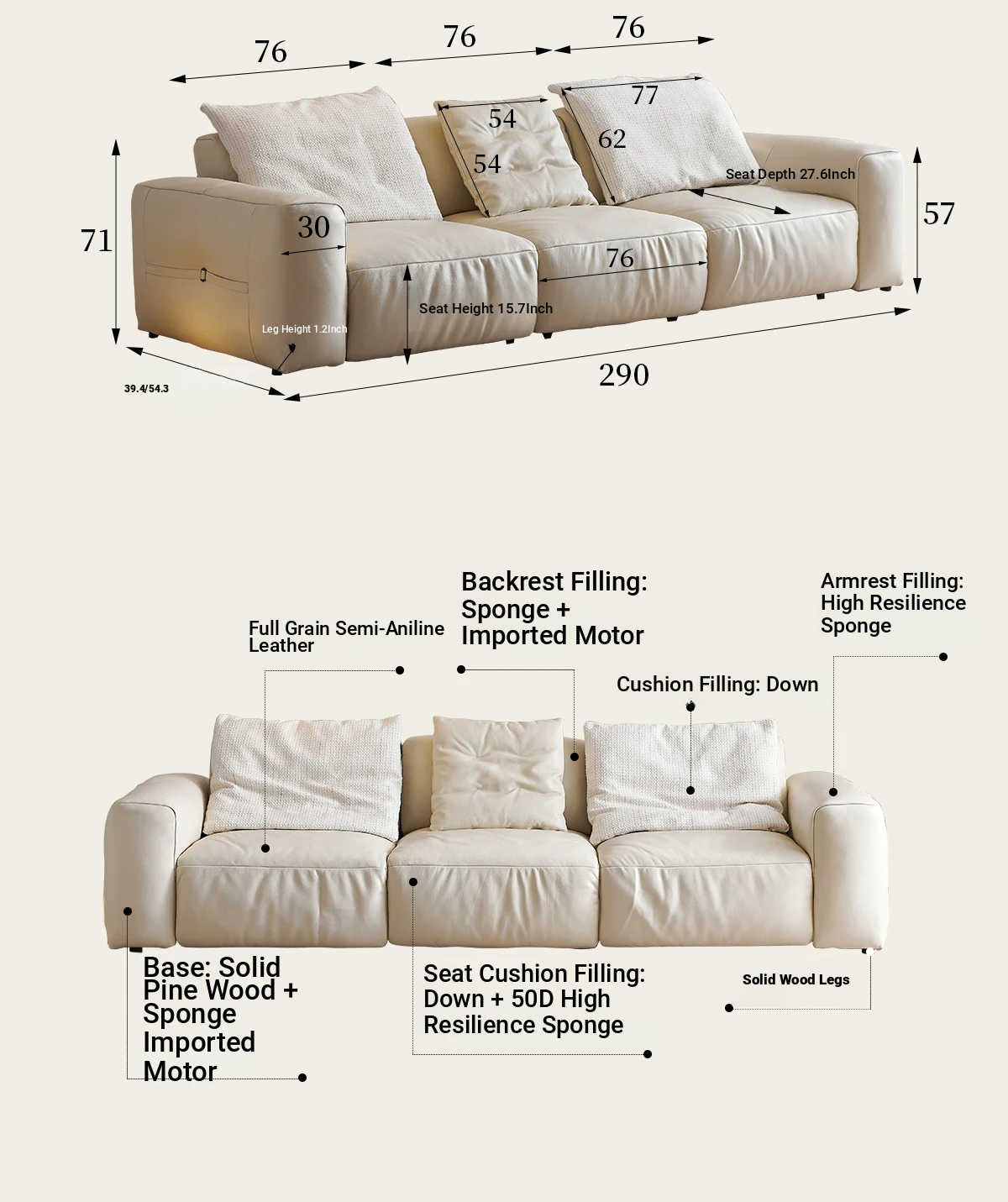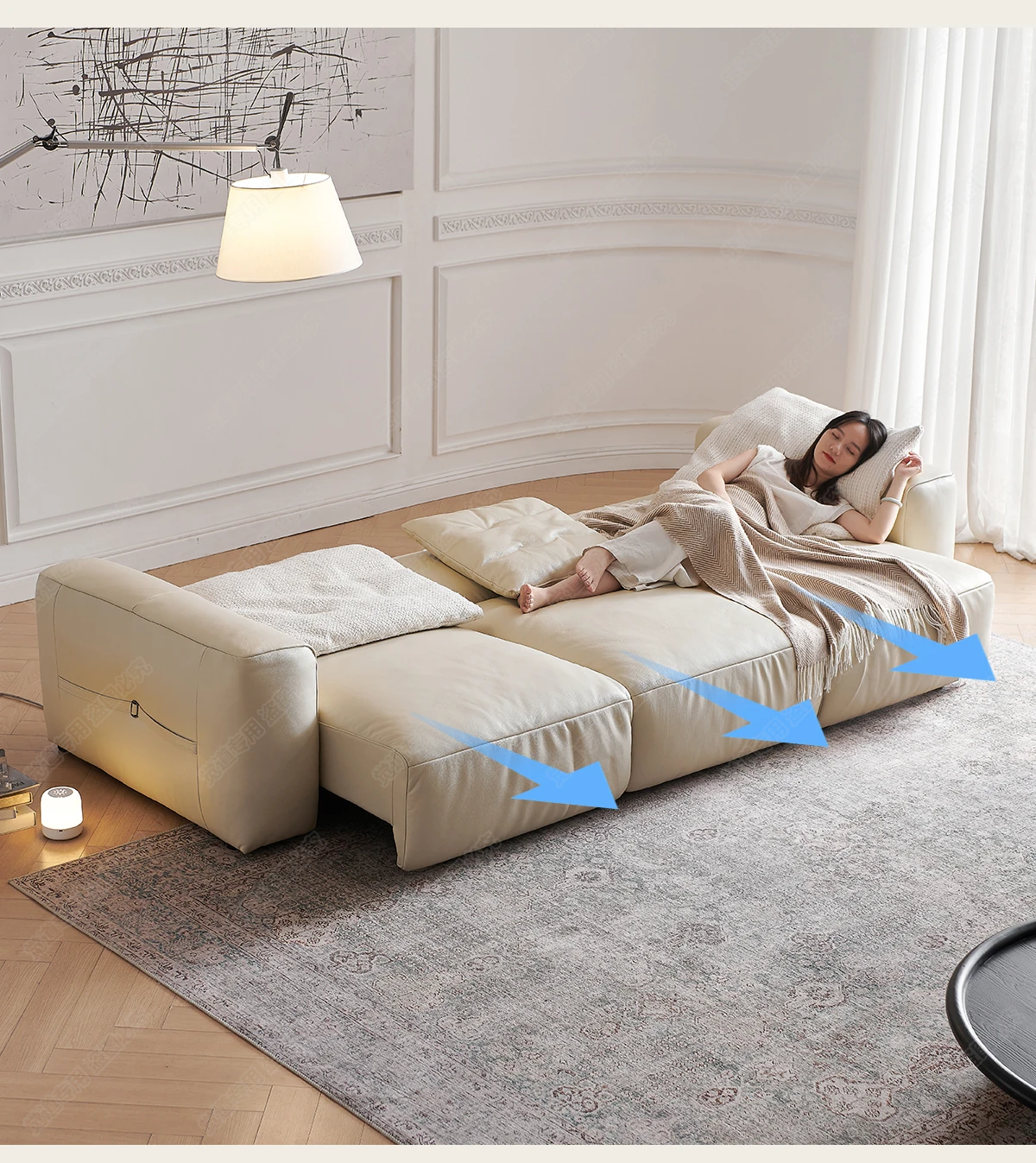 French Cream Style Genuine Leather Sofa Bed – Versatile, Adjustable, and Electric Reclining for Ultimate Comfort – Perfect for Three People!