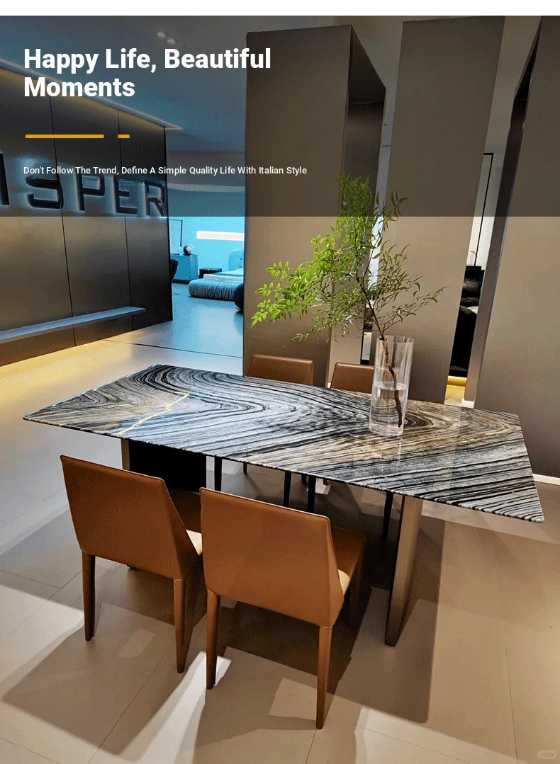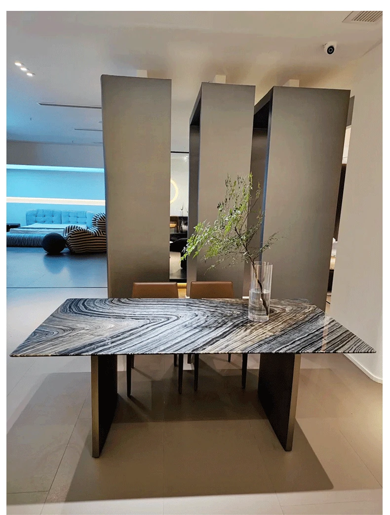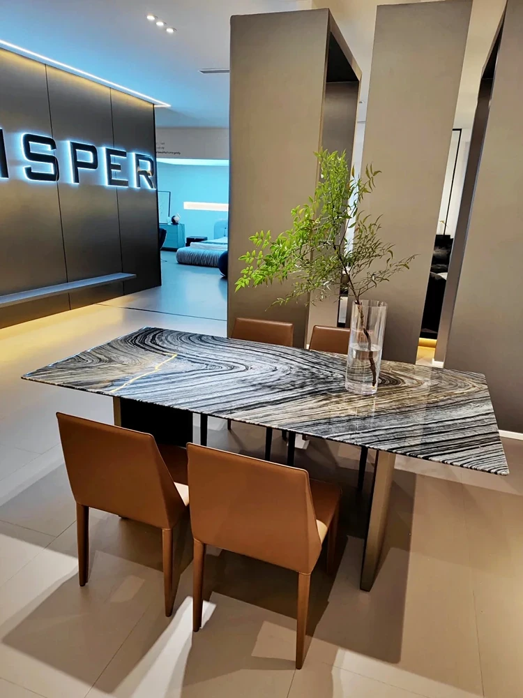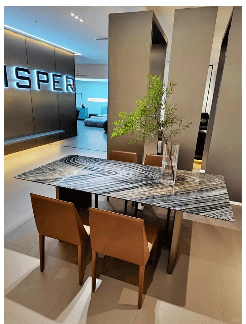 Imported Ancient Wood Grain Luxury Marble Dining Table - Modern Minimalist Rectangular Dining Table for Villas - Sleek and Stylish Home Dining Experience