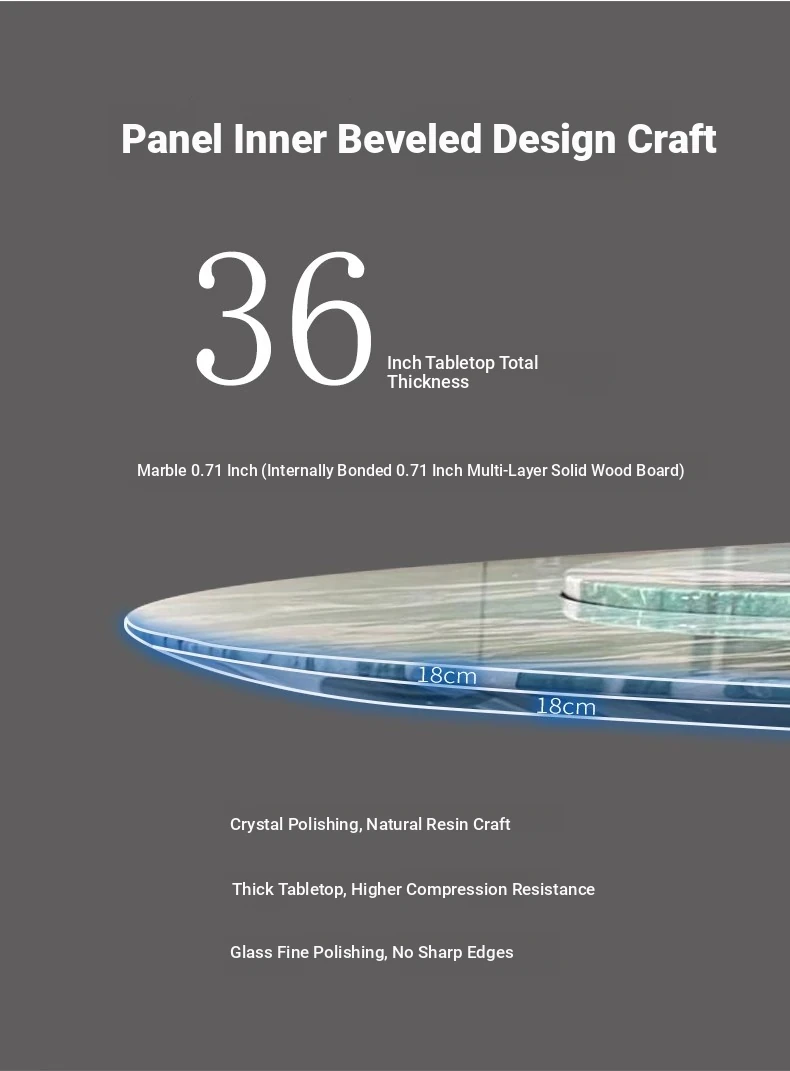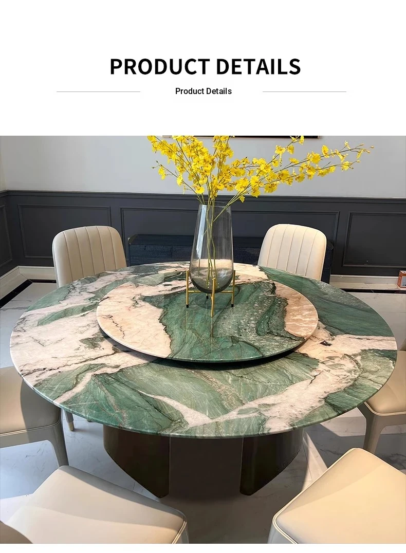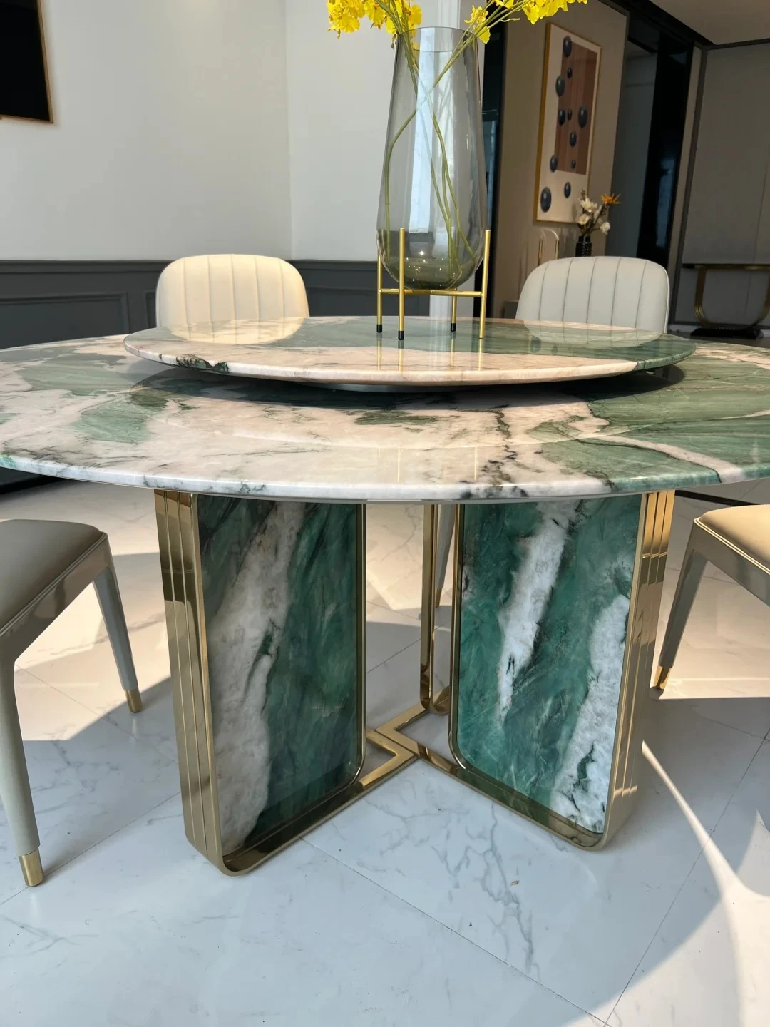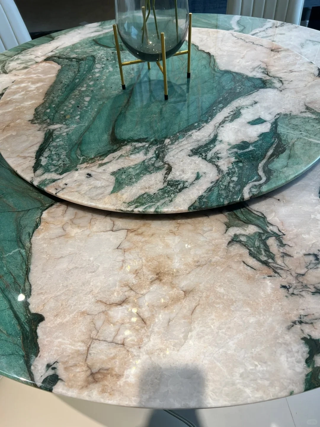 Imported Italian Luxury Natural Marble Dining Table with Jade Inlay - Round Villa Home Table with Lazy Susan for Elegant Dining Experience
