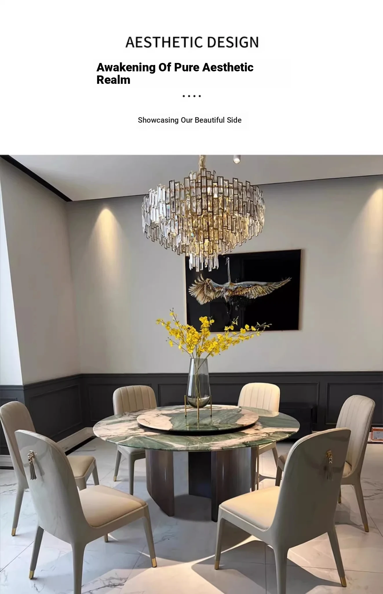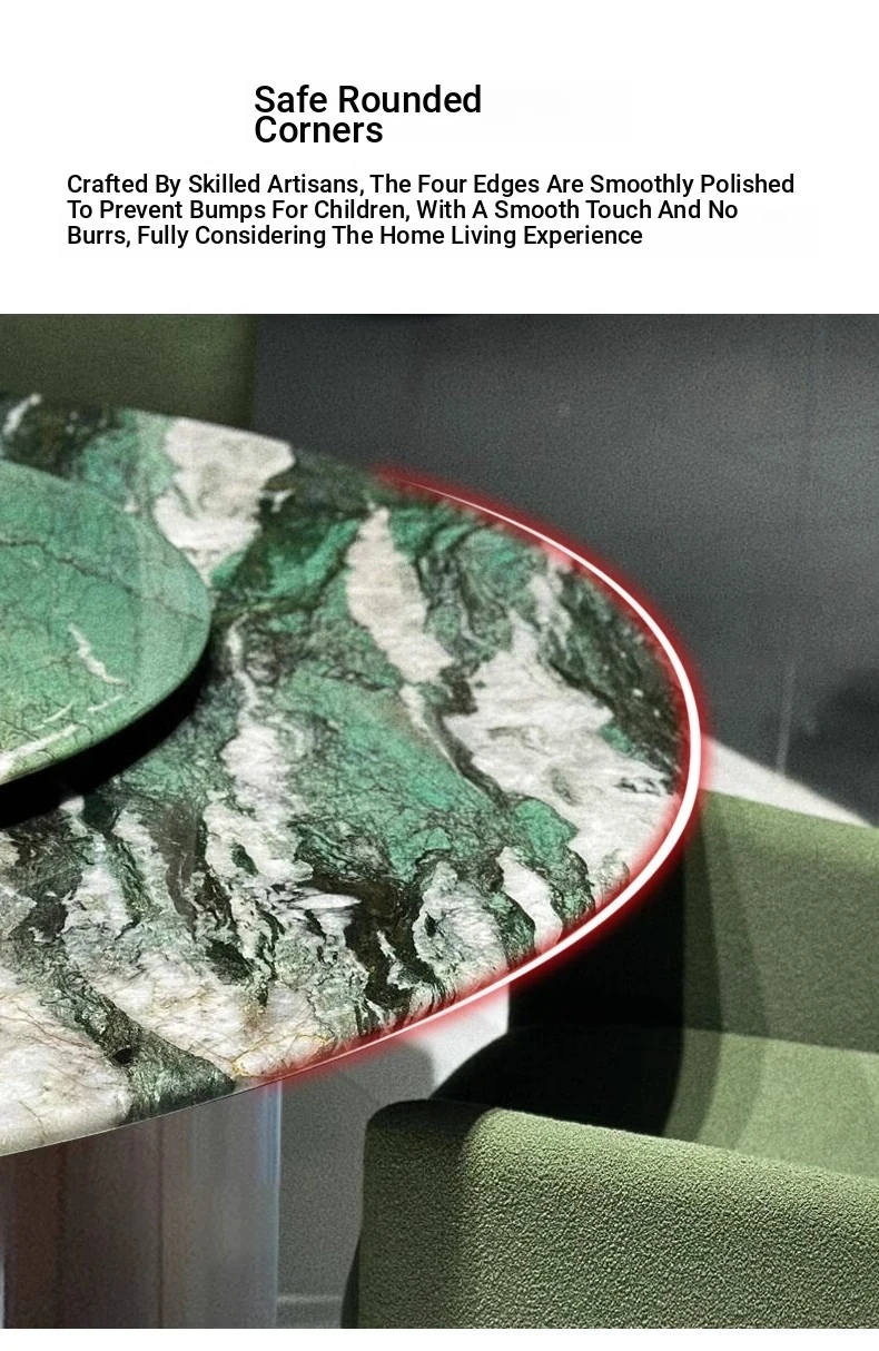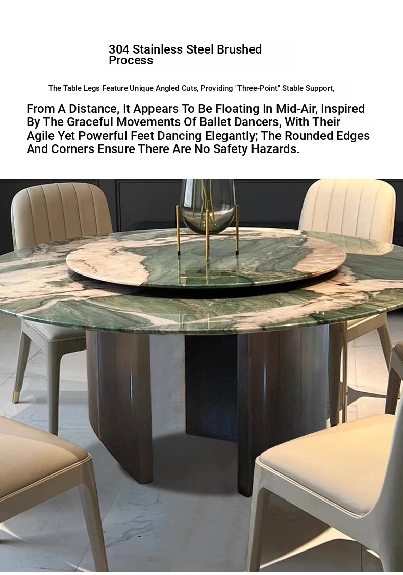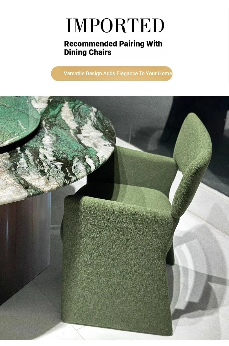 Imported Italian Luxury Natural Marble Dining Table with Jade Inlay - Round Villa Home Table with Lazy Susan for Elegant Dining Experience