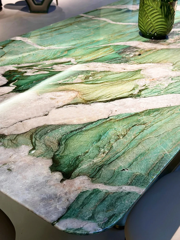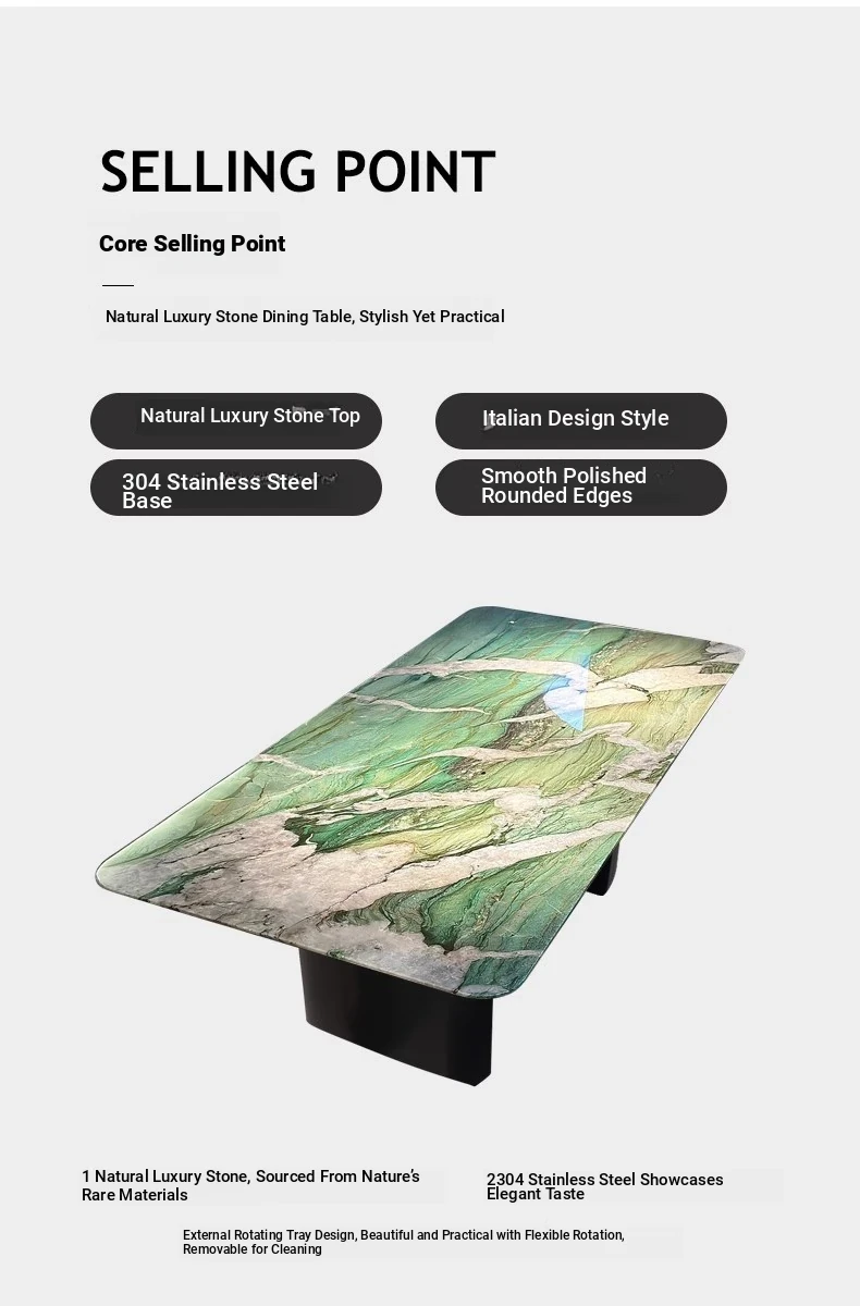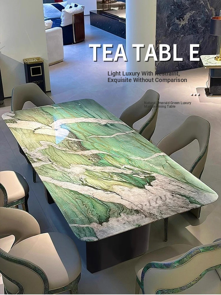 Imported Natural Luxury Stone Jade Dining Table - Designer Marble for High-End Villas and Spacious Homes, Perfect for Elegant Dining Experiences