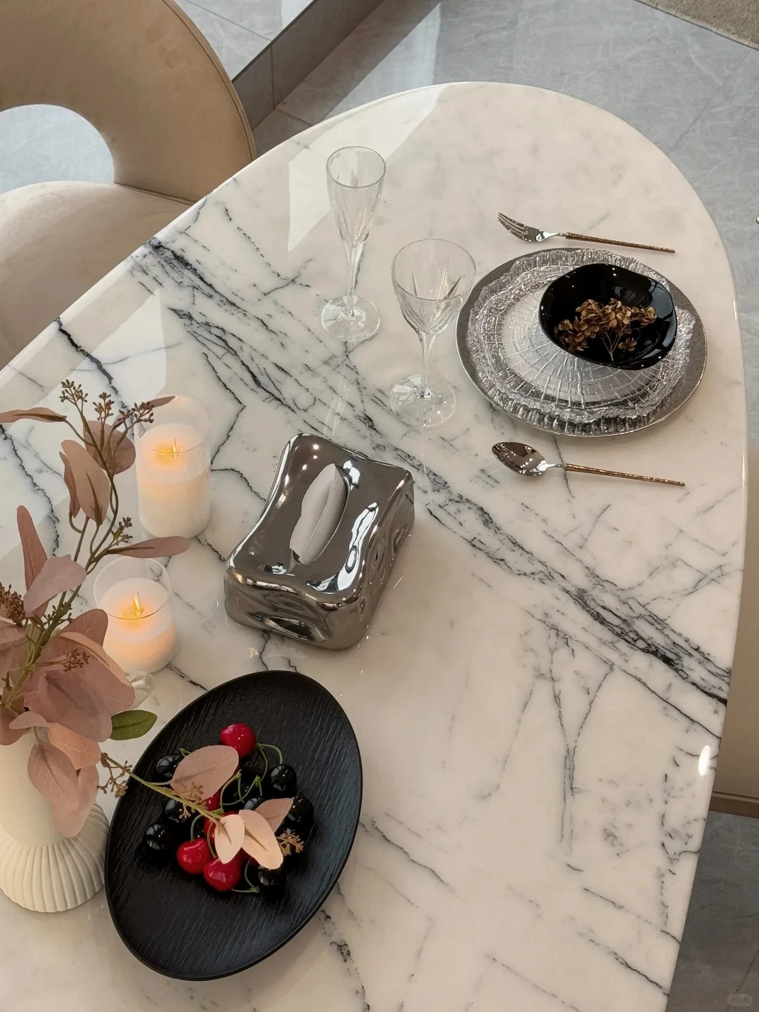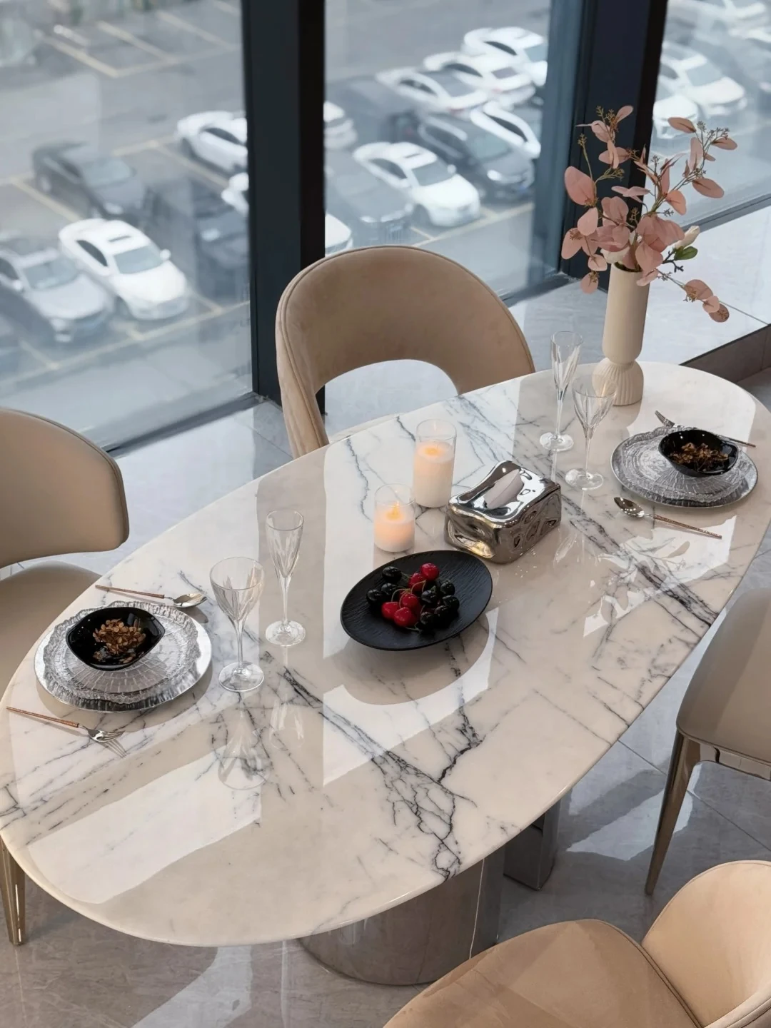 94.49in*39.37in dining table +8 chairs/natural luxury stone fragrant snow plum