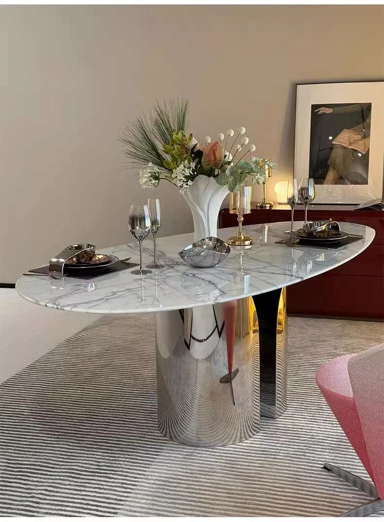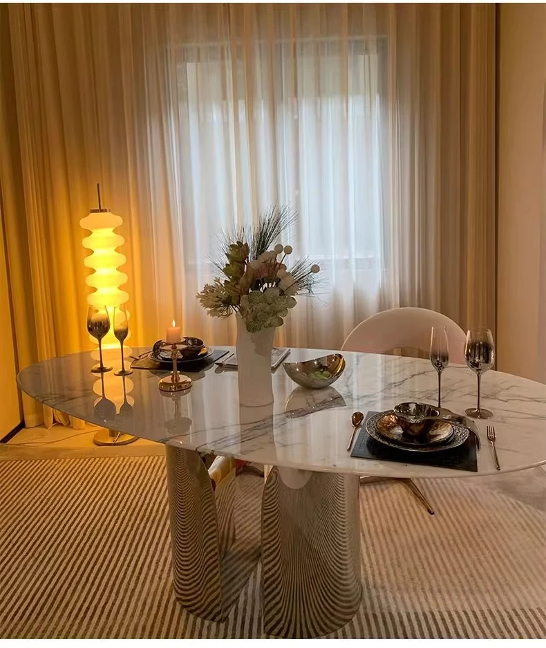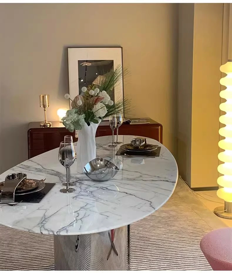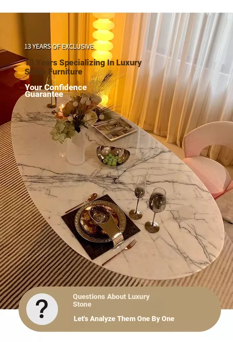Imported Natural Luxury Stone Osmanthus Marble Dining Table - Elegant Italian Minimalist Design for High-End Villas, Oval Shaped, Perfect for Home Use