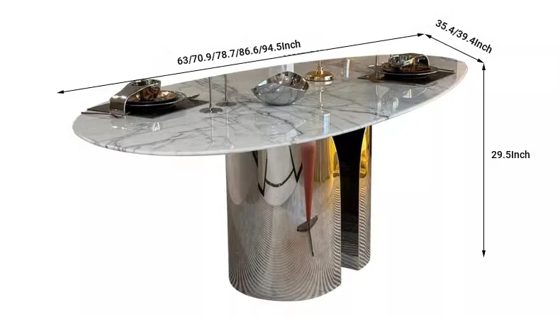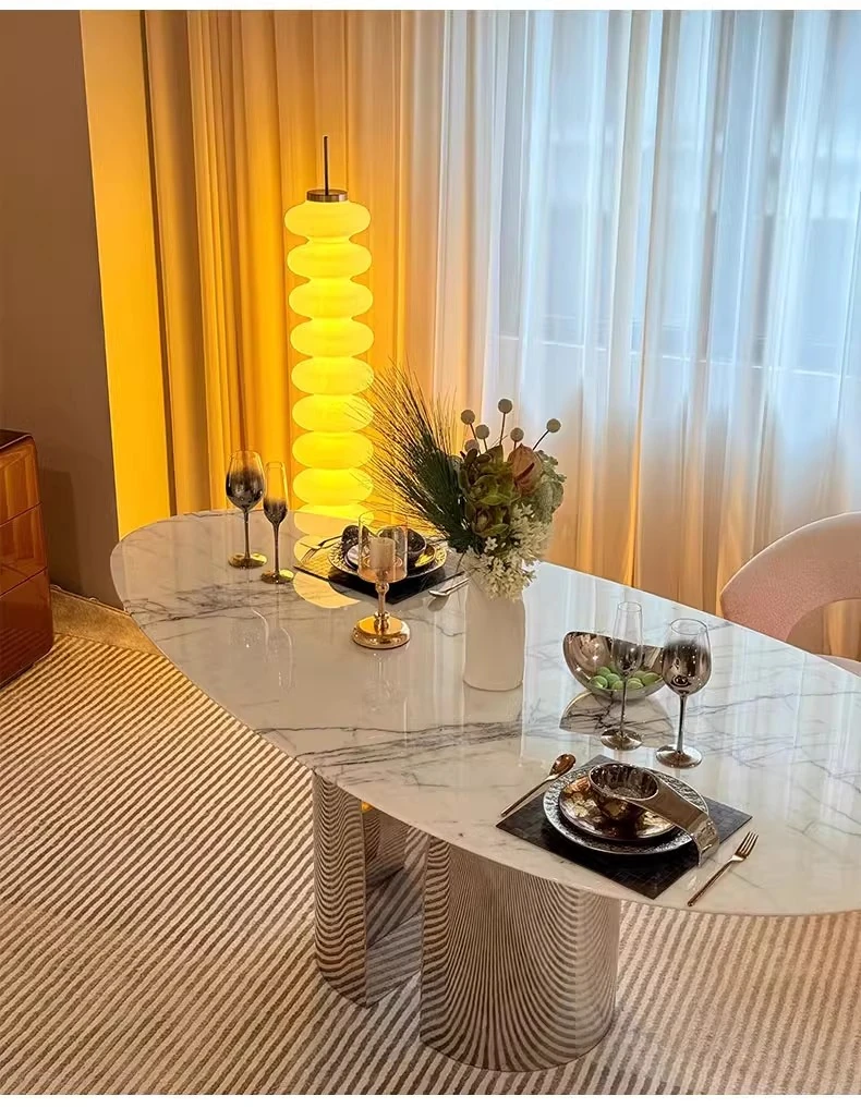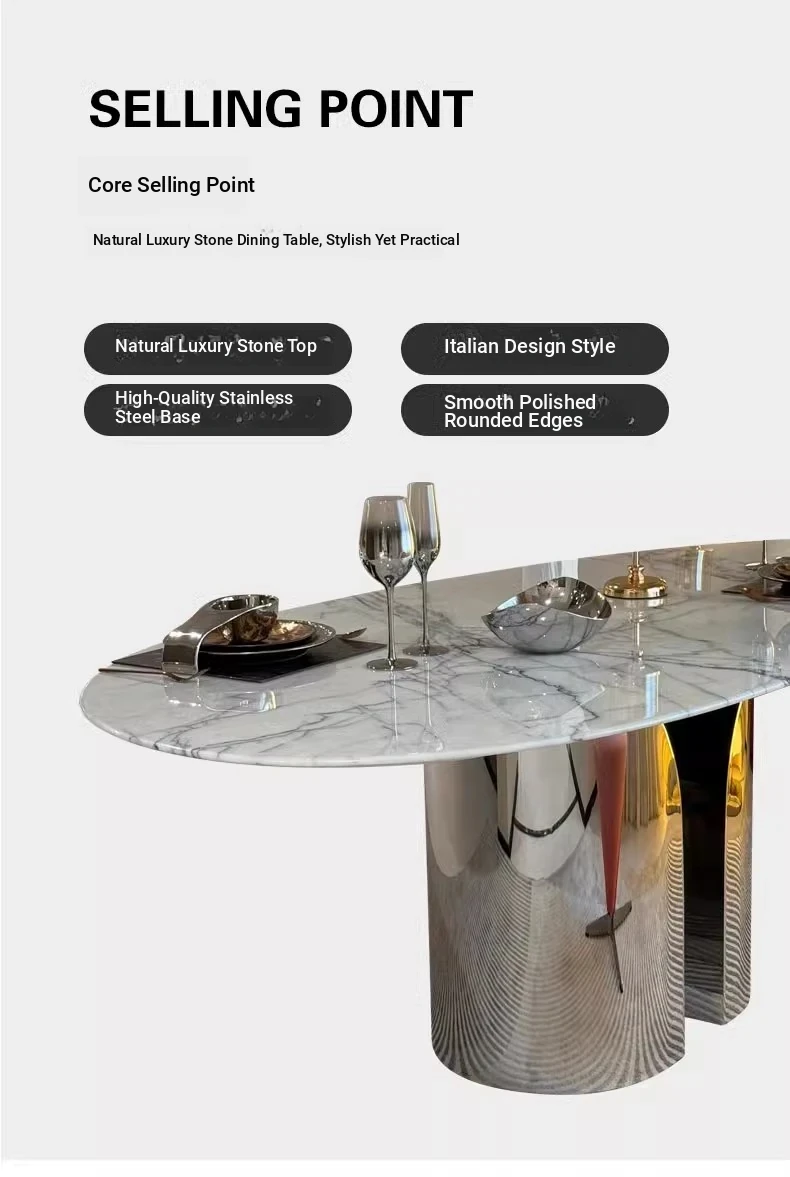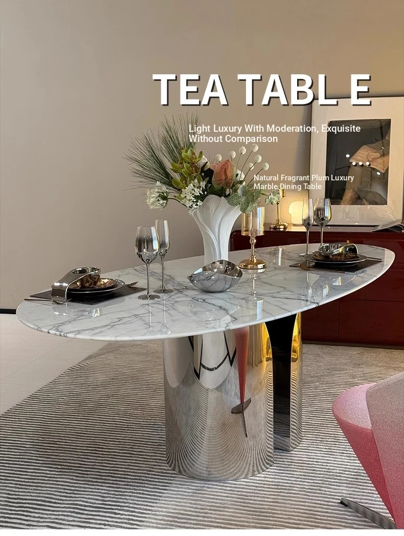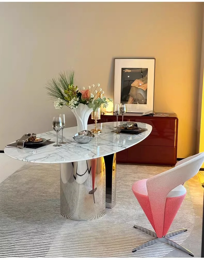 Imported Natural Luxury Stone Osmanthus Marble Dining Table - Elegant Italian Minimalist Design for High-End Villas, Oval Shaped, Perfect for Home Use